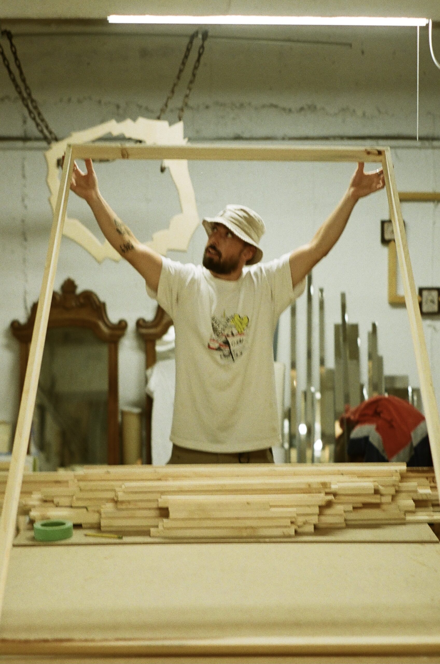 Développant une relation encore plus étroite avec son héritage et ses racines, au propre comme au figuré, il s’approvisionne depuis plusieurs années en bois sur les terres de sa famille. Il veille à être présent à toutes les étapes de transformation des matières premières, les déconstruisant pour mieux les reconstruire, de la manière la plus éthique possible. Il travaille donc principalement avec ce que la nature lui donne, inversant le rapport que notre société actuelle entretient avec la production.