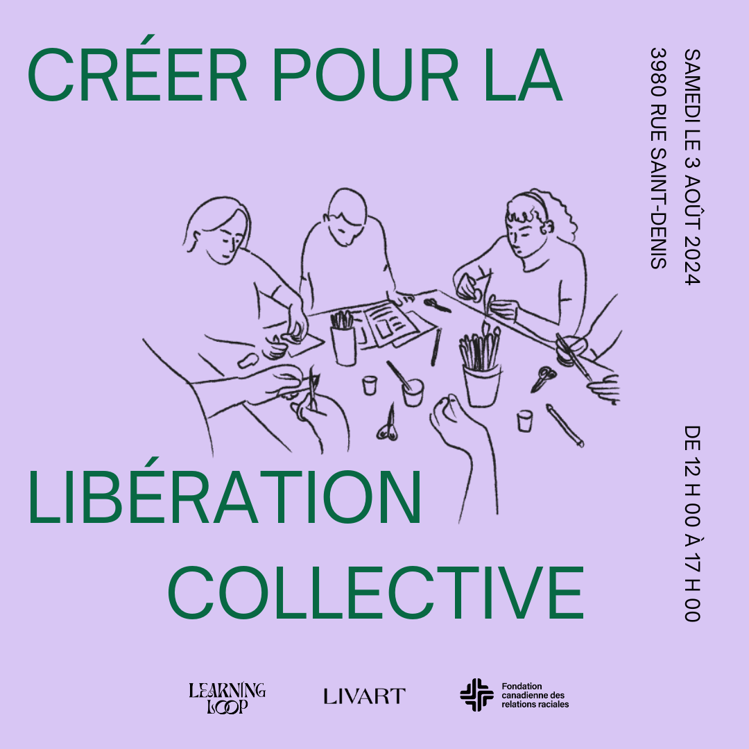 This workshop aims to harness the transformative power of art to strengthen social cohesion, encourage self-expression and promote social justice. Participants will be able to imagine works that reflect their aspirations and visions of a more equitable and inclusive society. Accompanied by committed creatives, whether you’re a novice or an experienced artist, this workshop will be an opportunity to meet, exchange and create connections while reflecting on art in relation to liberation.