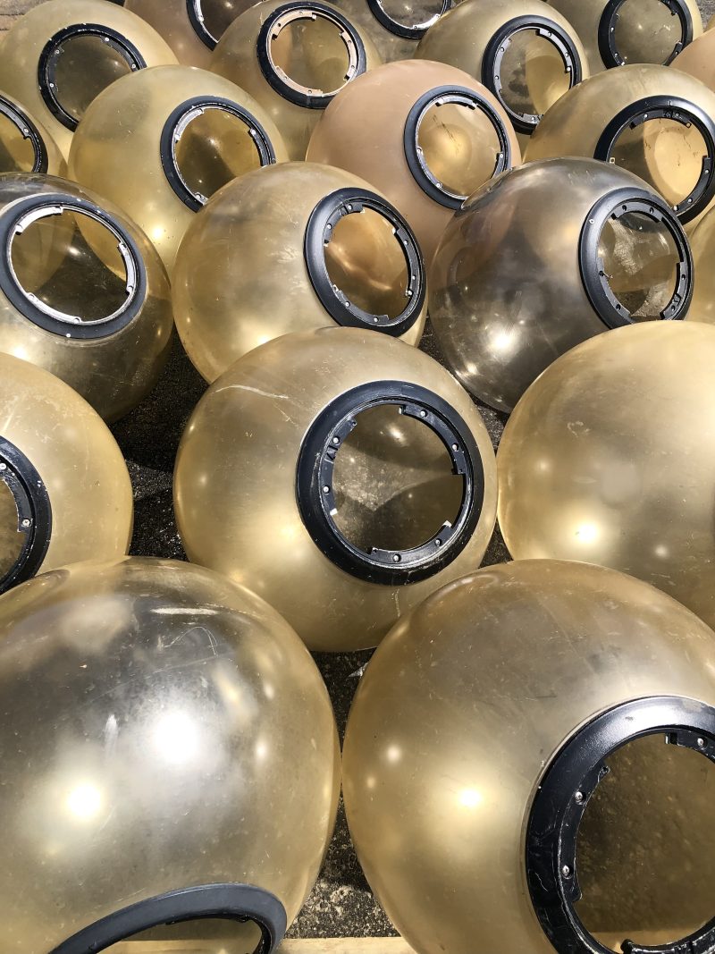 Surexposition puts forward the theme of overcycling* in creative practices by using the emblematic acrylic globes of the City of Montreal’s old street lamps as creative material. Marie-Pier Gauthier-Manes was the artistic director and designer of an immersive installation, and Philippe Charlebois-Gomez was invited to design lighting fixtures using the globes provided by Mine urbaine.