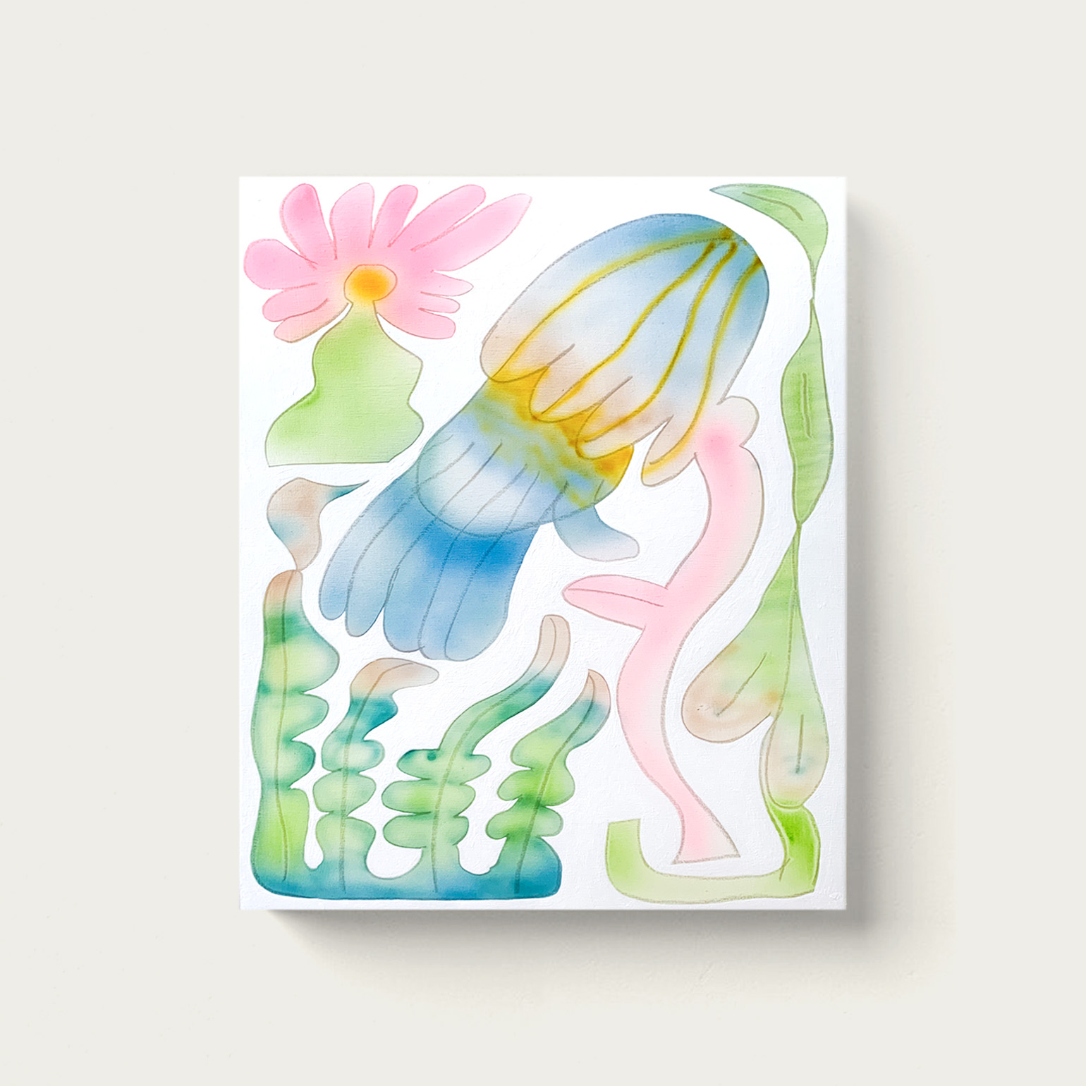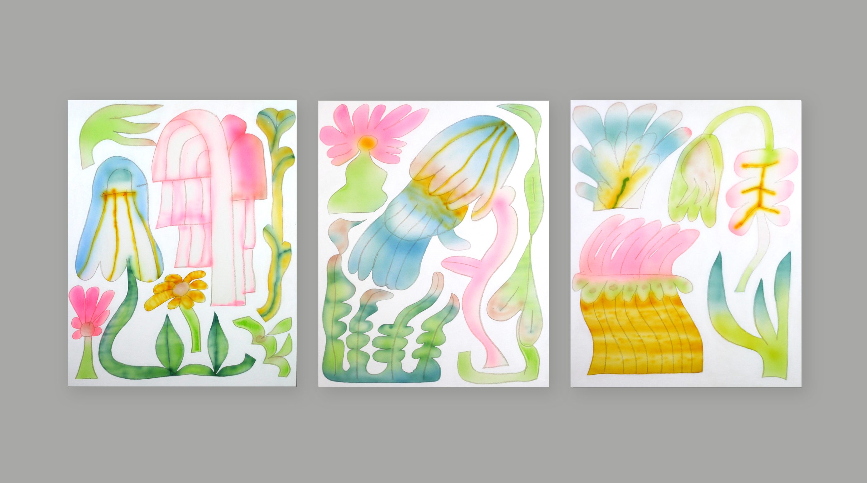 This series of paintings coincides with the arrival of spring and the end of a forced break. The seasons follow one another cyclically, unlike creation which is often punctuated by stops. There may be a pause as a search for meaning and relevance, but this was imposed by health. This series therefore underlines the resumption of daily life after illness, just as flowering announces sunshine and renewal. With the flower, the color and the airbrush, blurry and without direction like his state, the artist was able to concretize in the material universe an ephemeral period in order to mark the end of it.