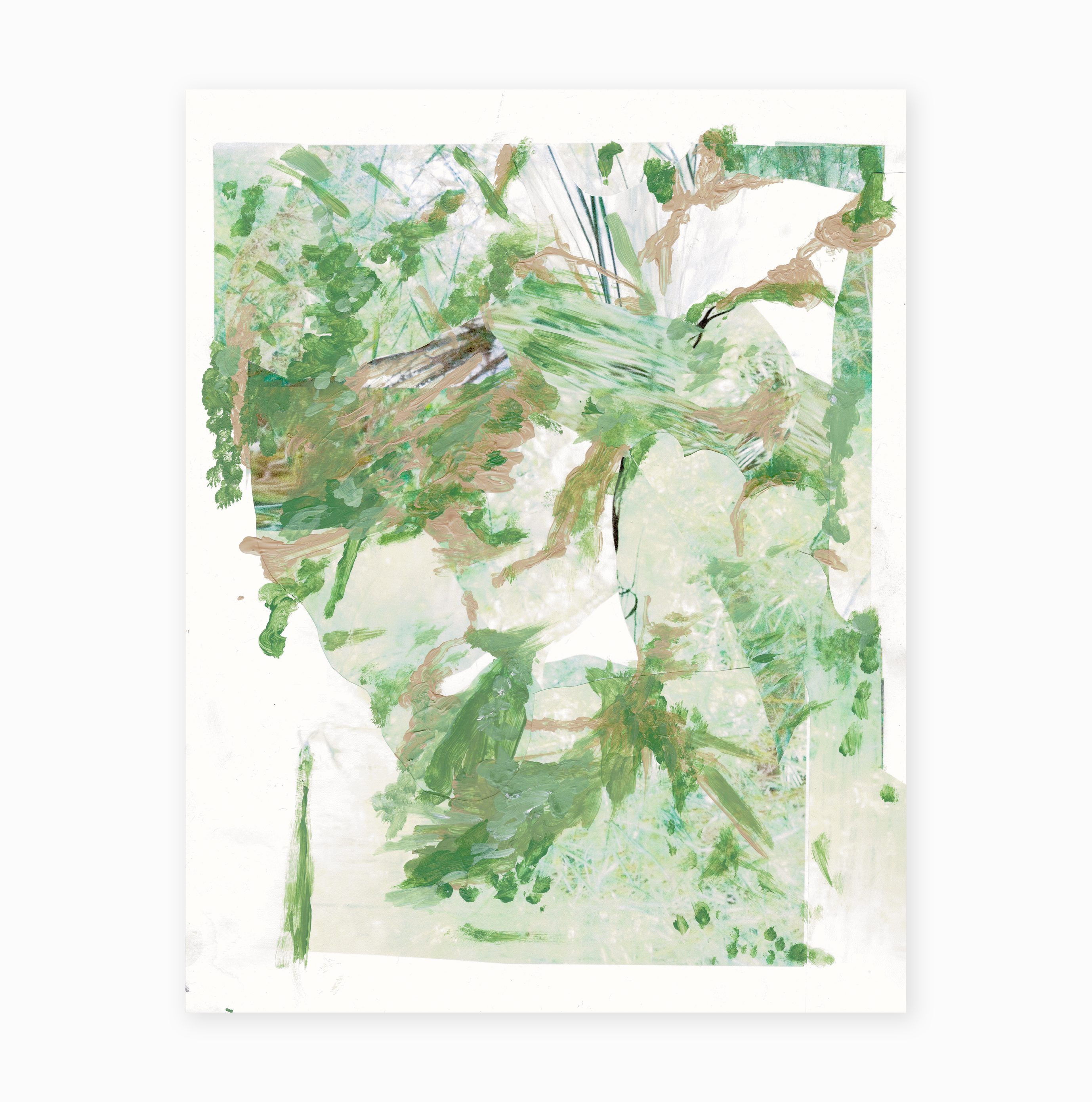 The image is created by digitization, the language specific to painting finds its way to image processing software. Various interactions of the artist, and the modified image is reprinted on a new physical medium. We then cut out this image to resonate the plastic qualities of an old recipe book that has taken on water, found in the attic. We re-intervene in painting on all the previous manipulations. The collage is torn to put its parts on other works in progress. Everything happens in Letter format, but is thought of in table format. When a work arises from this formal chaos, I scan it in high resolution to print it in large format on fine art paper.