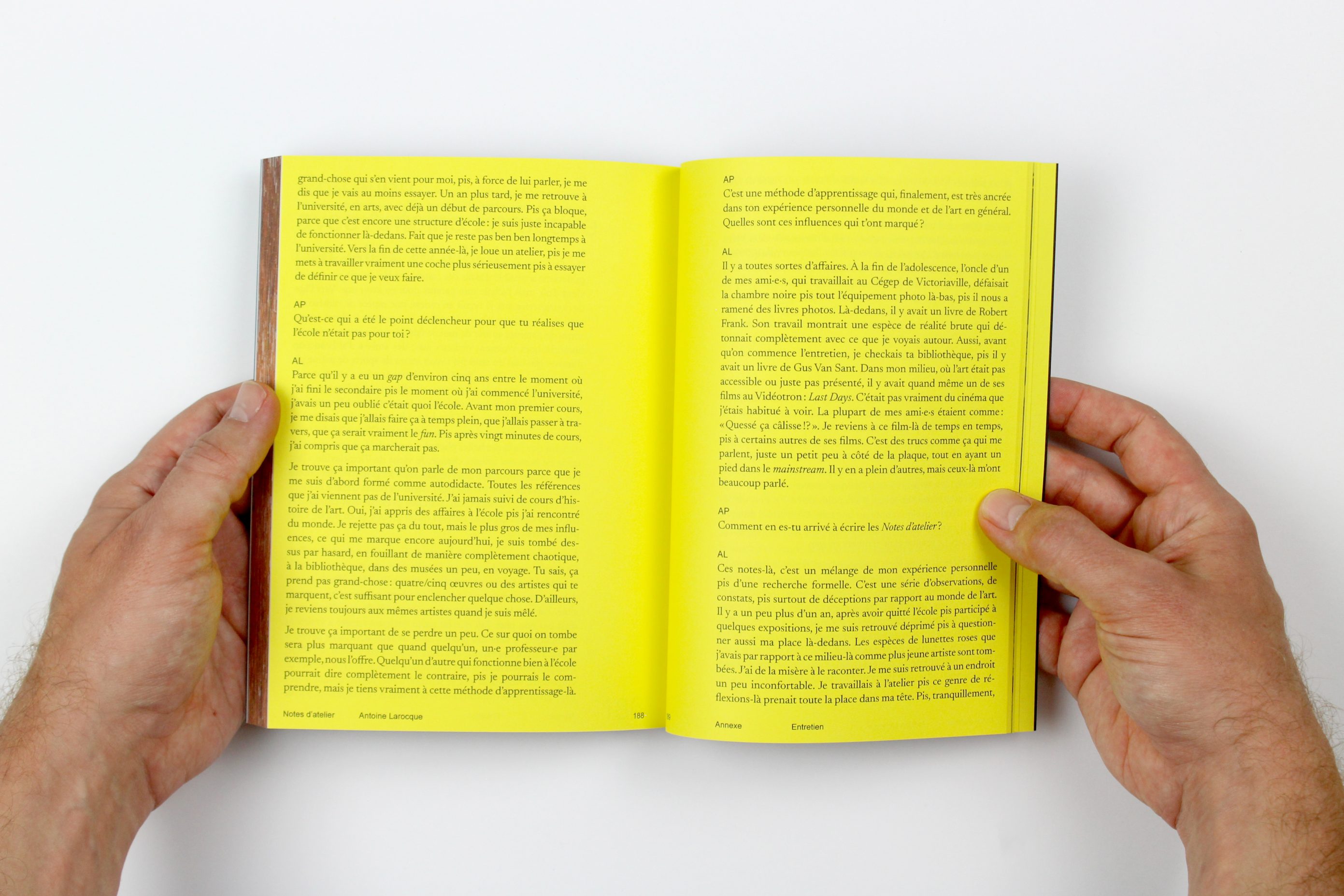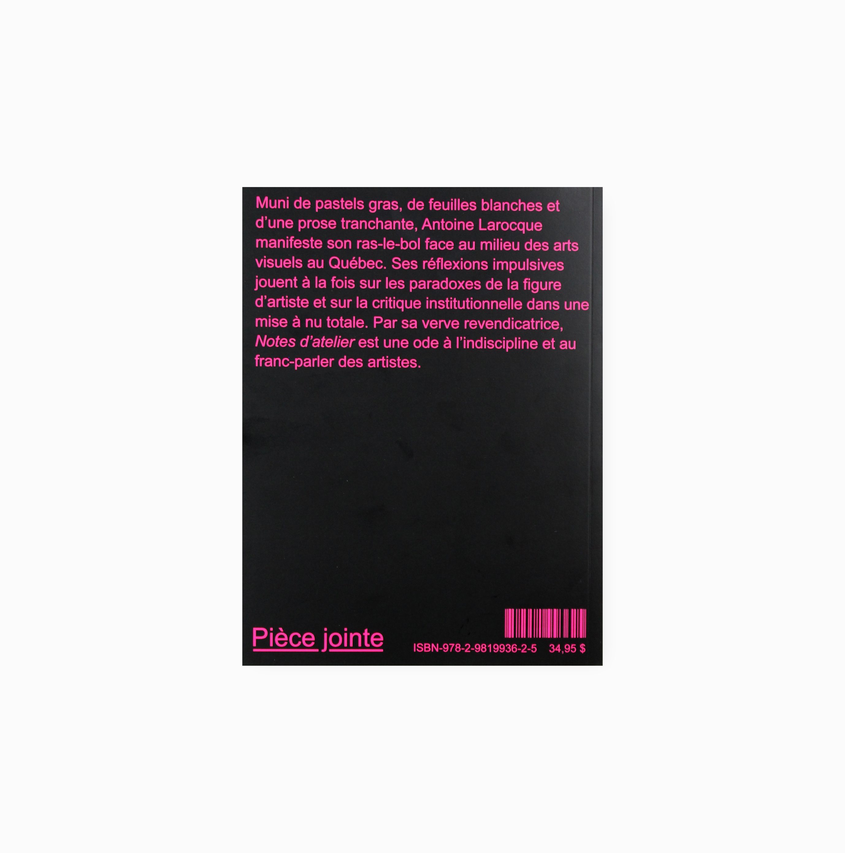Armed with oil pastels, white sheets and sharp prose, Antoine Larocque shows his displeasure towards the visual arts community in Quebec. His impulsive reflections play both on the paradoxes of the figure of the artist and on institutional criticism in a total exposure. Through its assertive verve, Notes d’atelier is an ode to the indiscipline and outspokenness of artists.