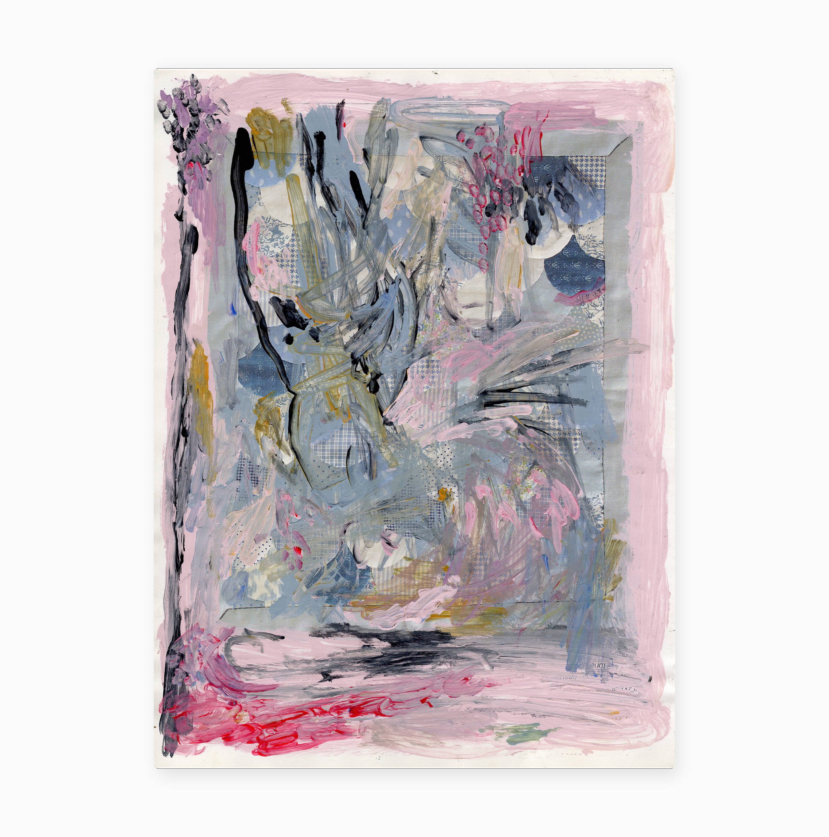 The image is created by digitization, the language specific to painting finds its way to image processing software. Various interactions of the artist, and the modified image is reprinted on a new physical medium. We then cut out this image to resonate the plastic qualities of an old recipe book that has taken on water, found in the attic. We re-intervene in painting on all the previous manipulations. The collage is torn to put its parts on other works in progress. Everything happens in Letter format, but is thought of in table format. When a work arises from this formal chaos, I scan it in high resolution to print it in large format on fine art paper.