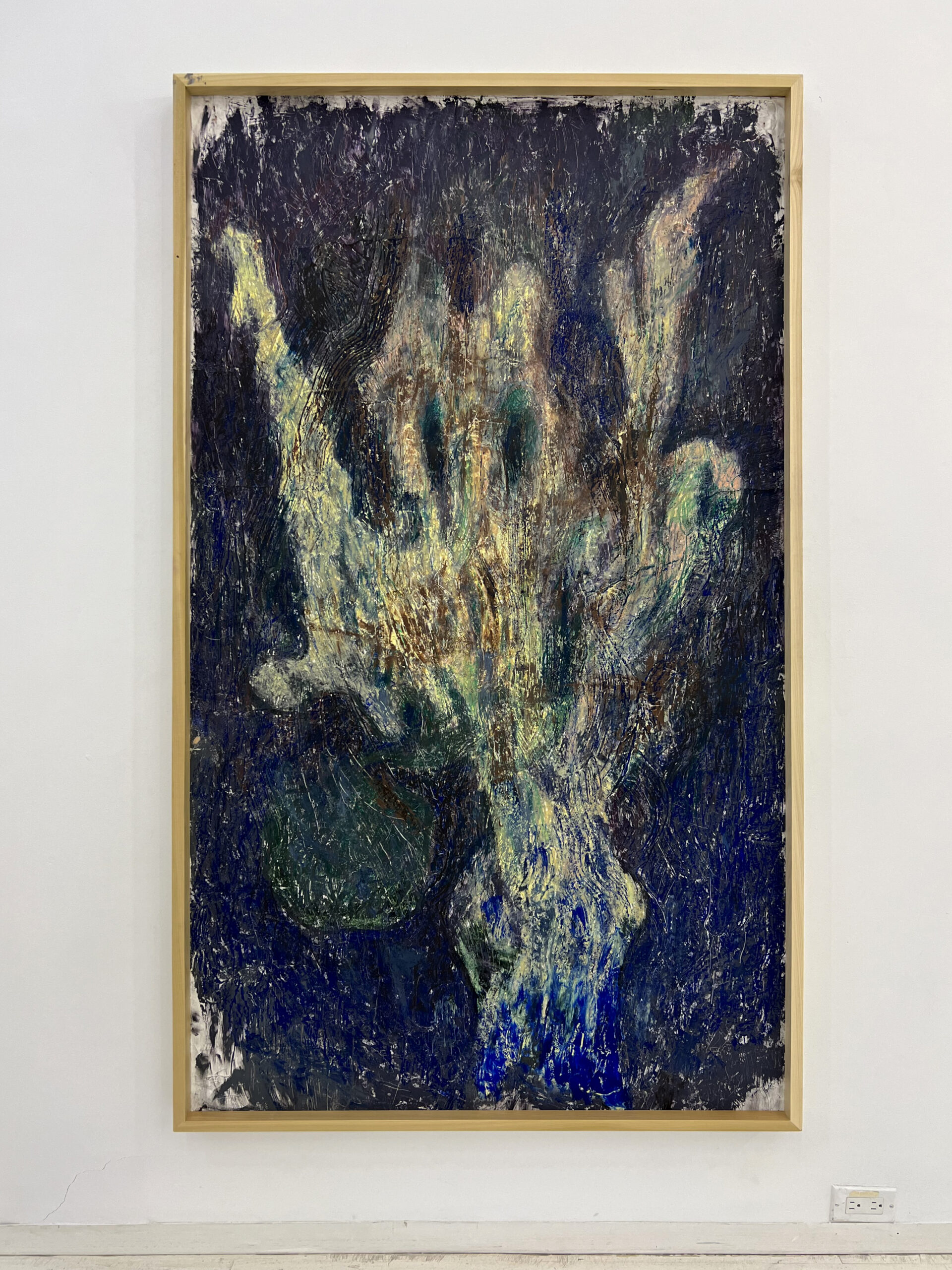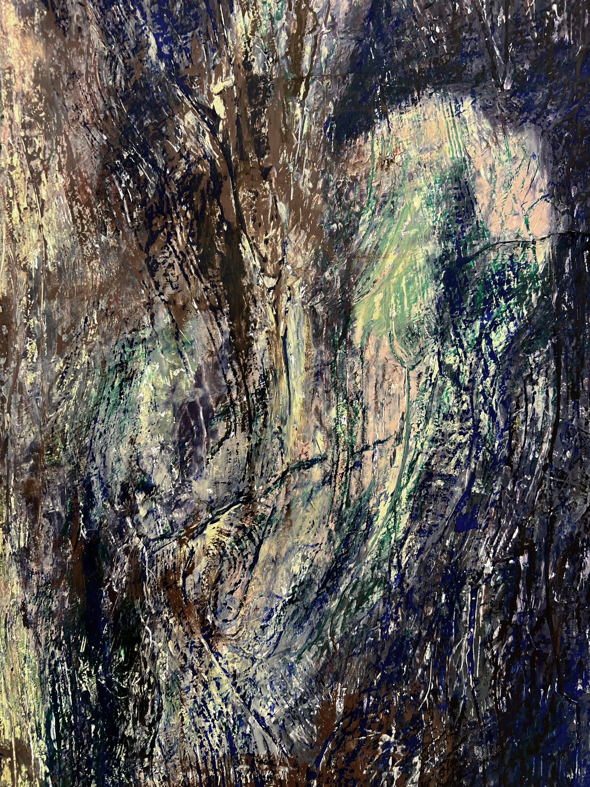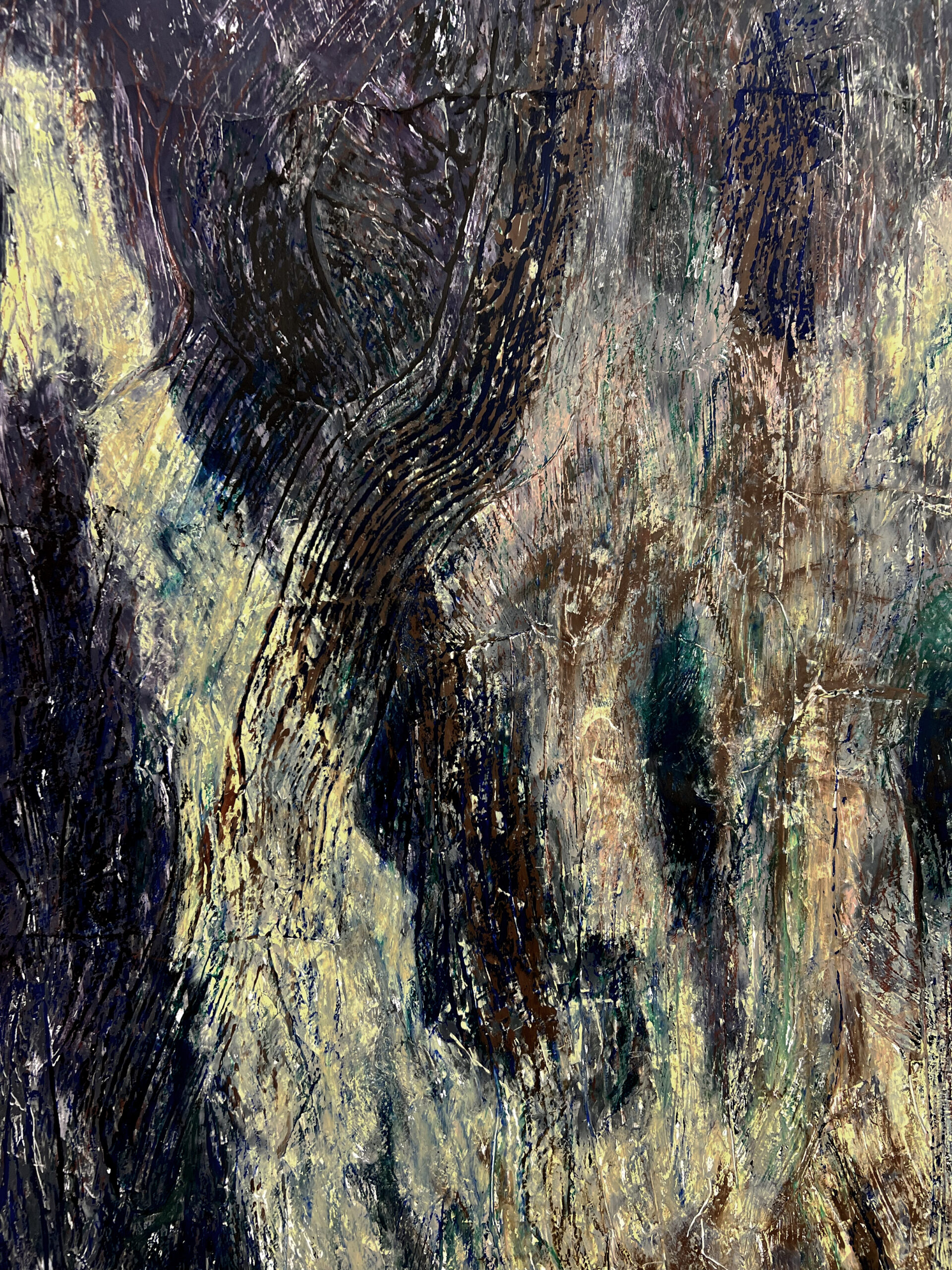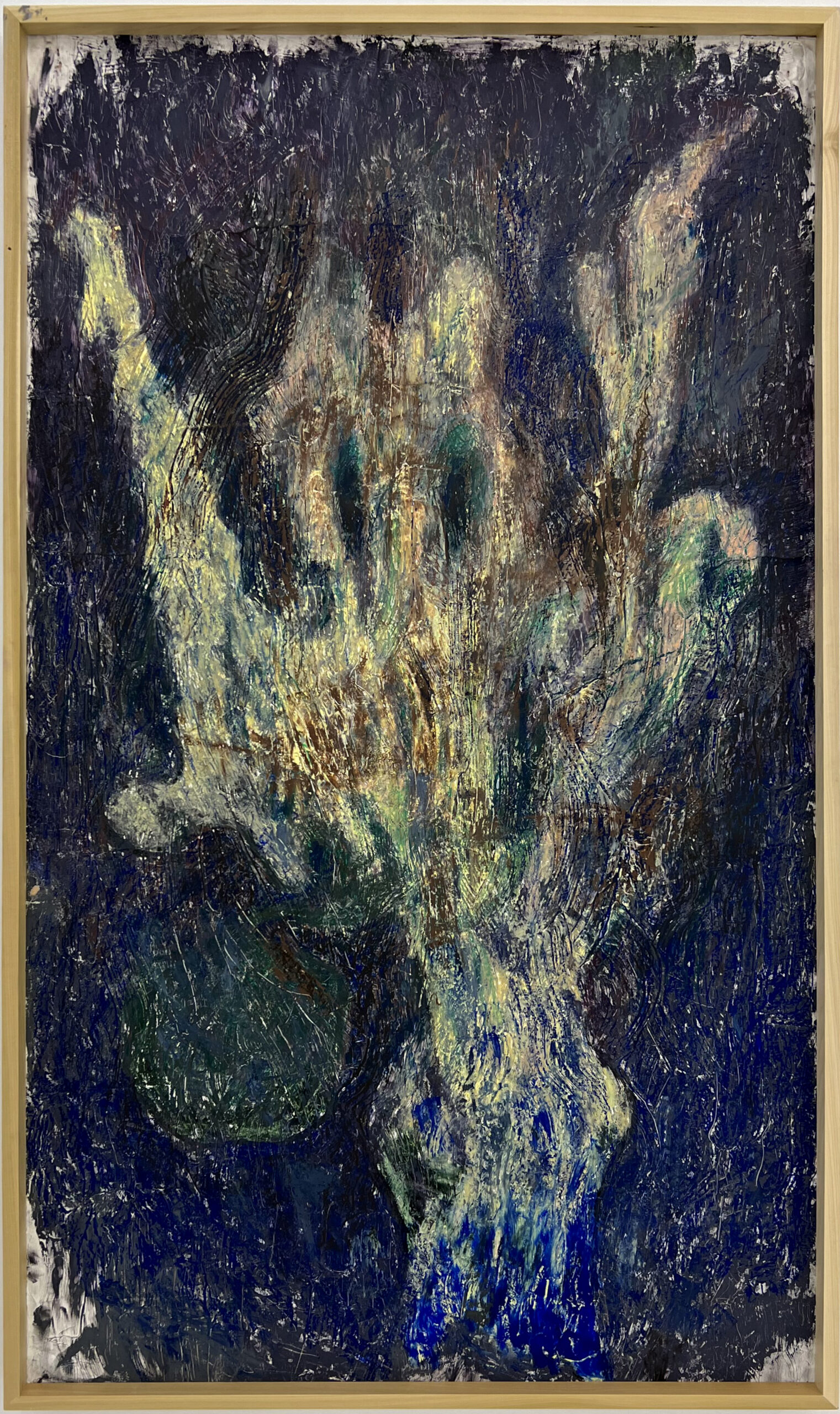 Oil pastel, wood charcoal and ink on Gessoed paper