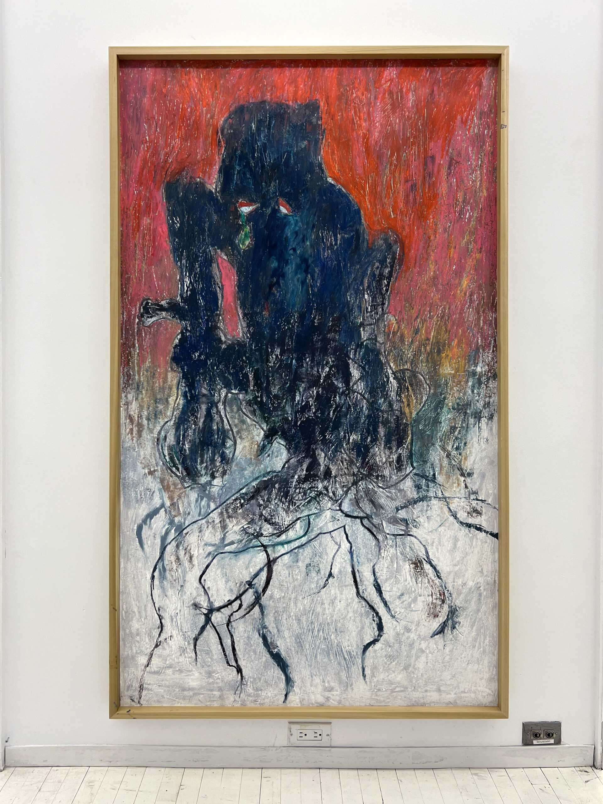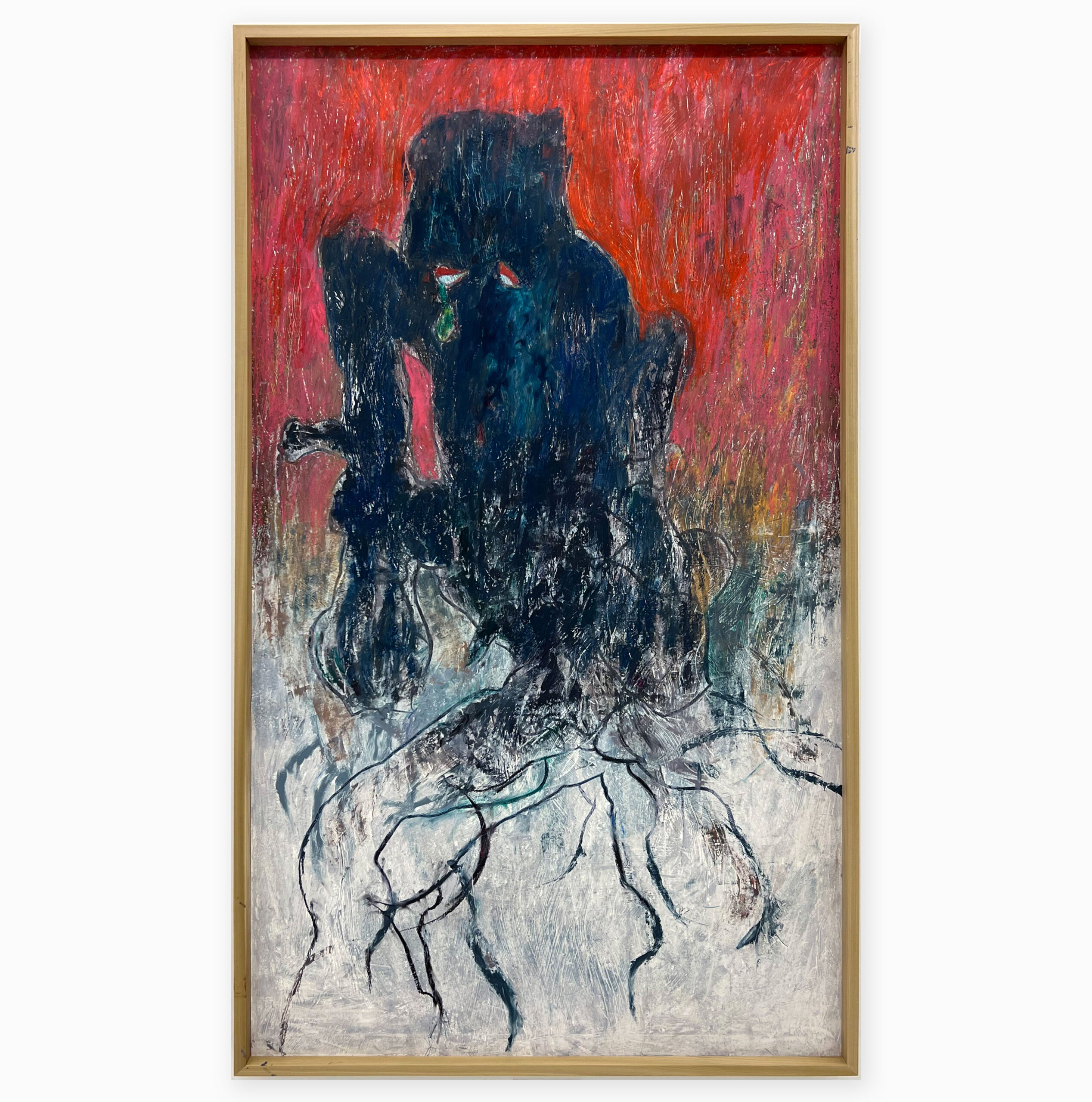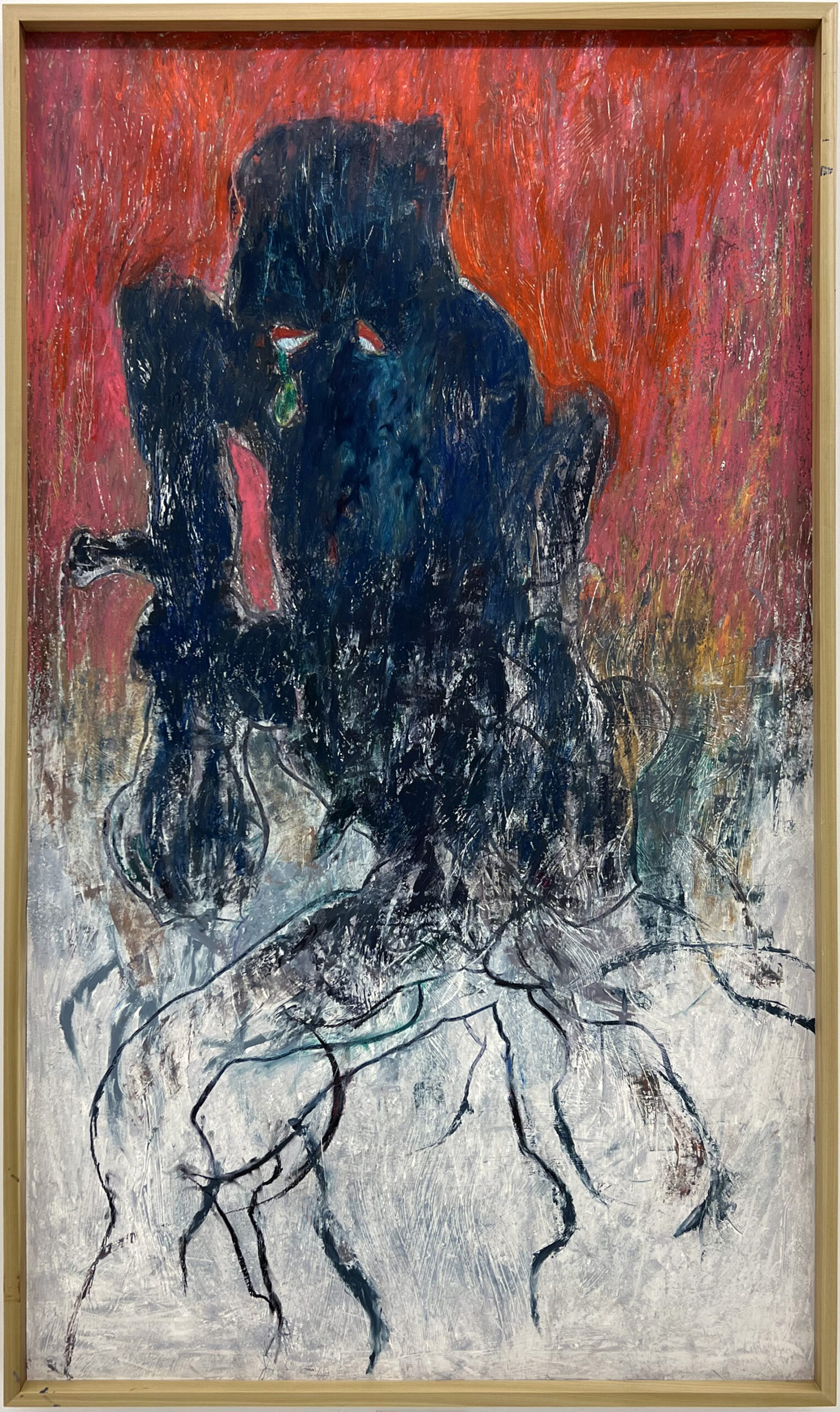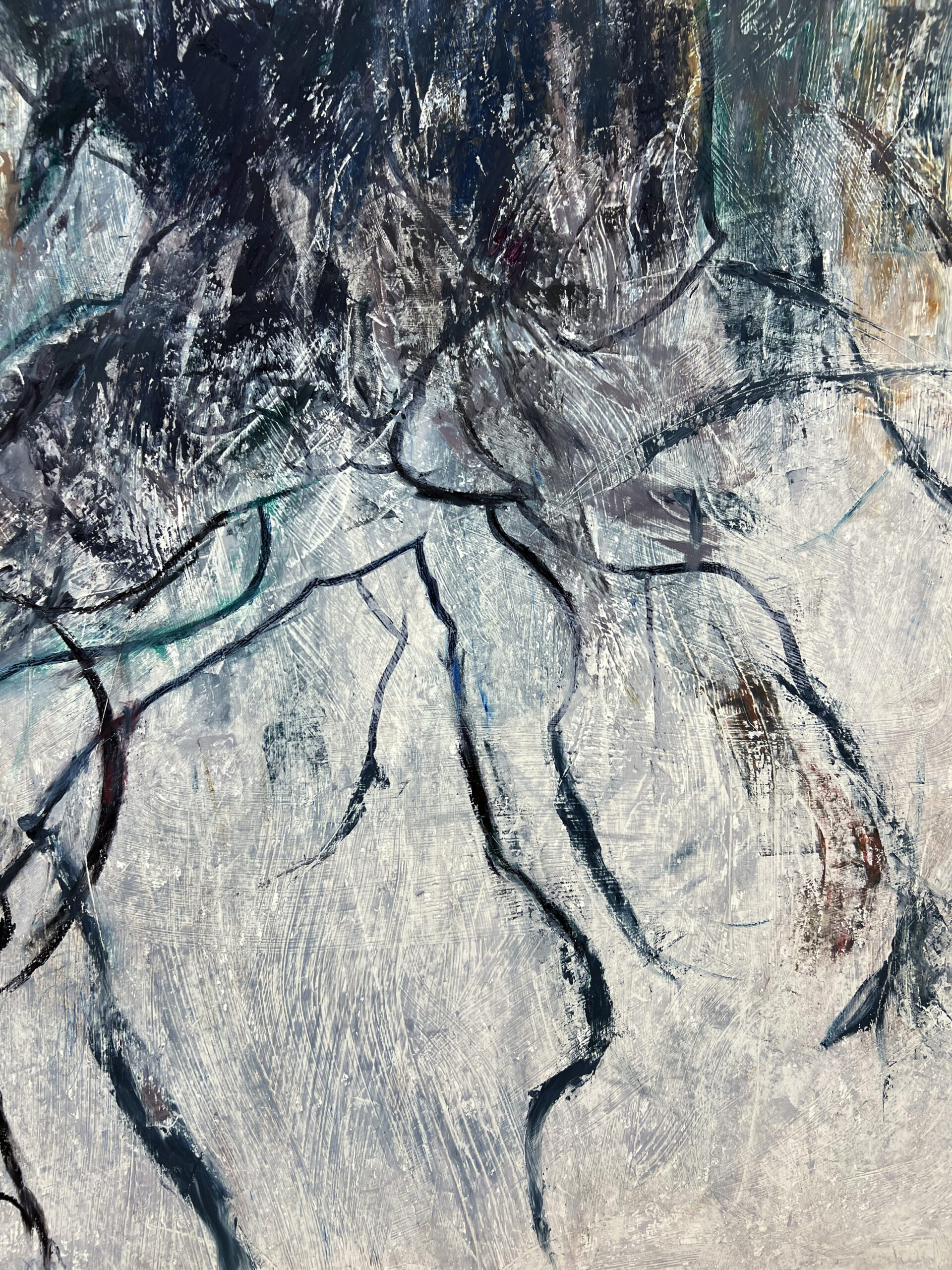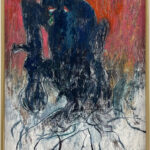 Oil pastel, wood charcoal and ink on Gessoed paper