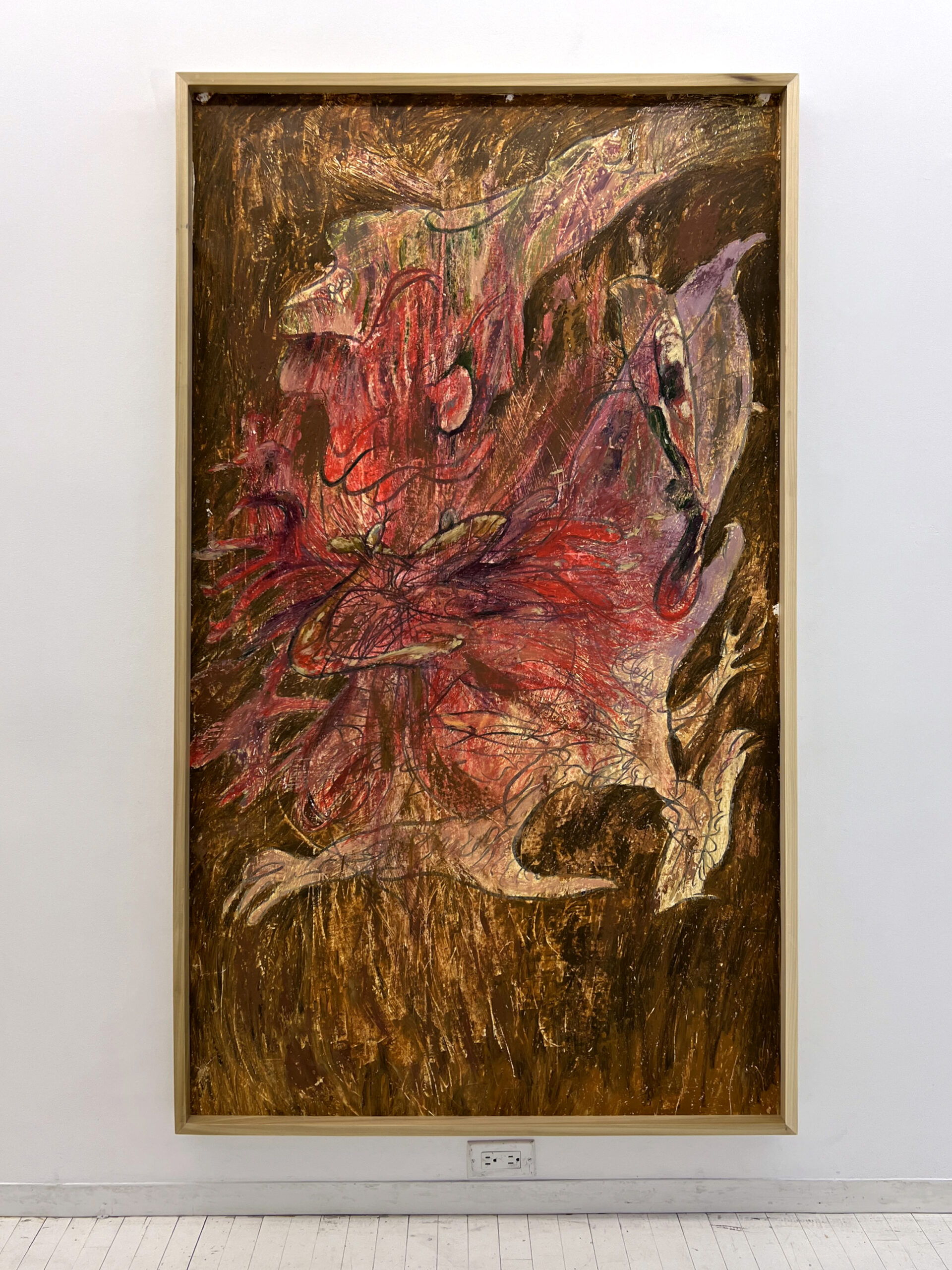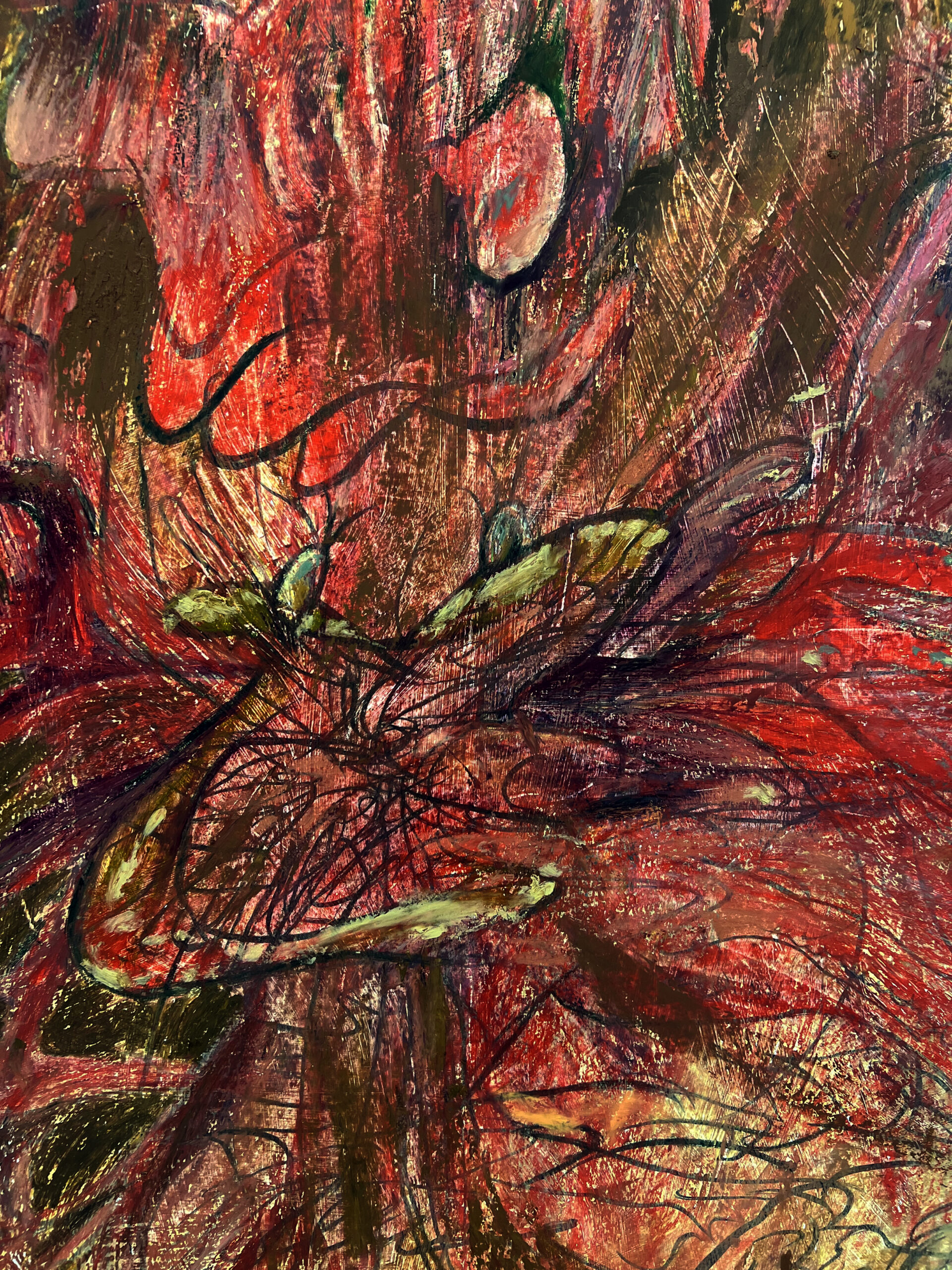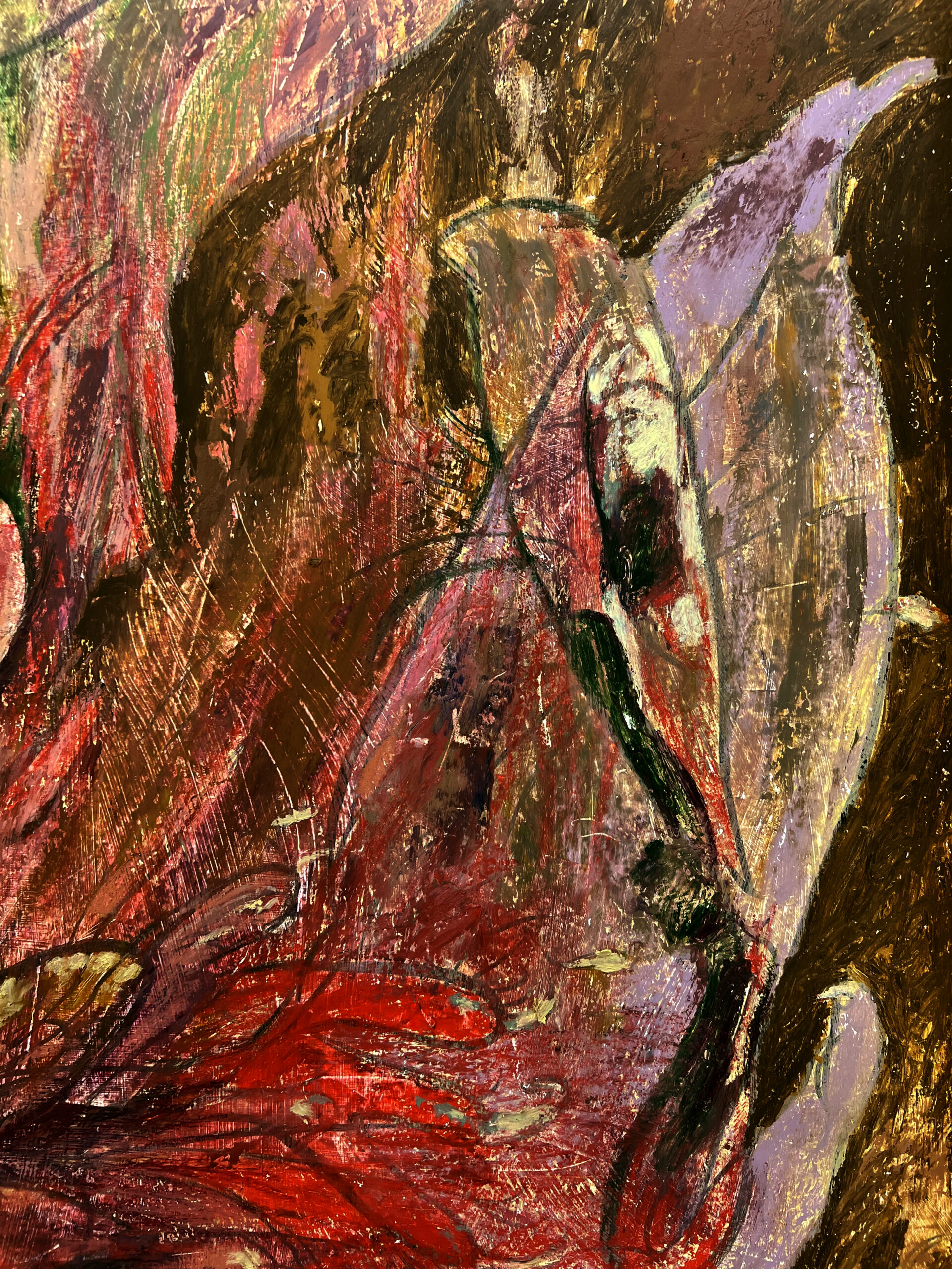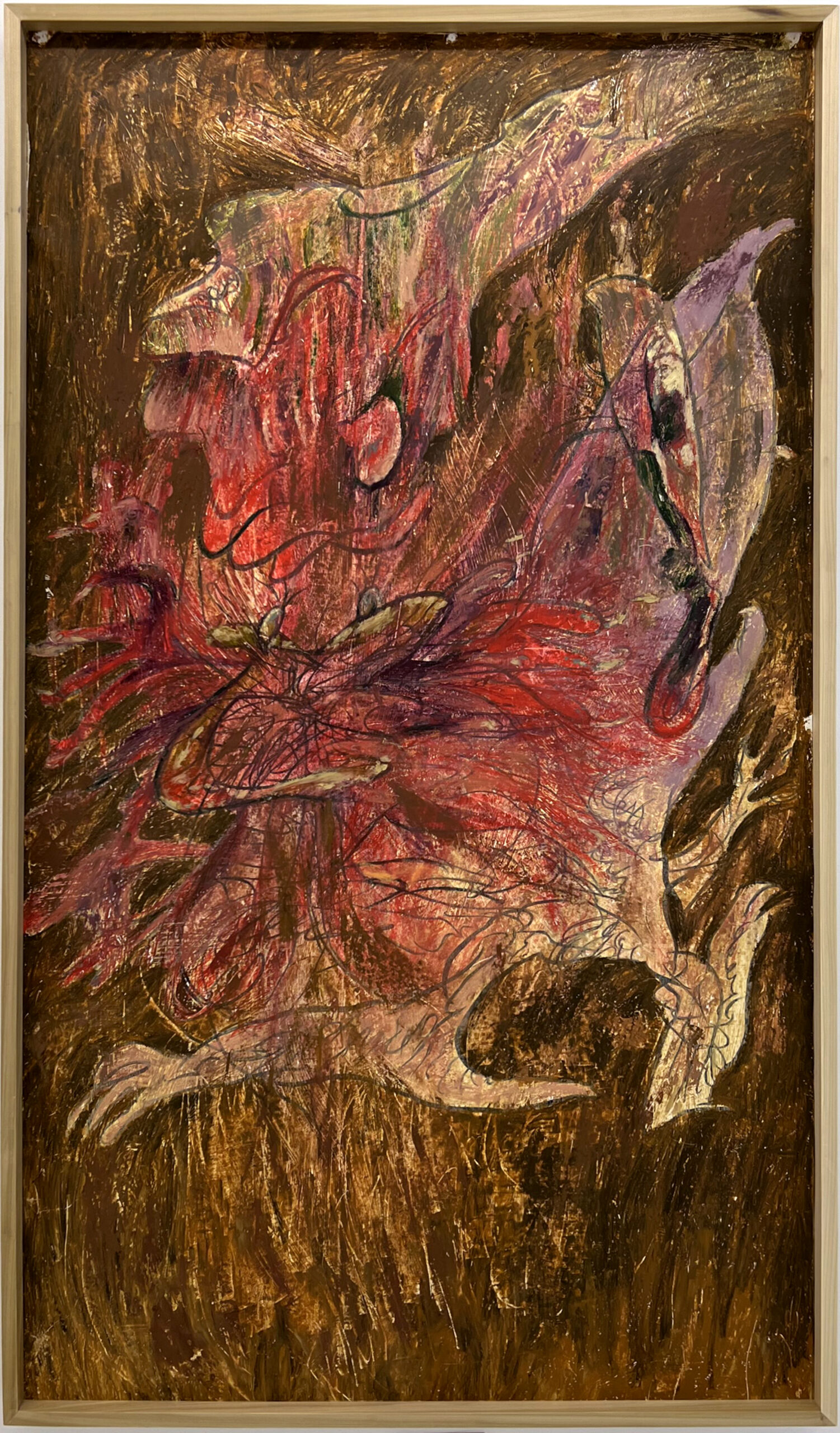 Oil pastel, wood charcoal and ink on Gessoed paper