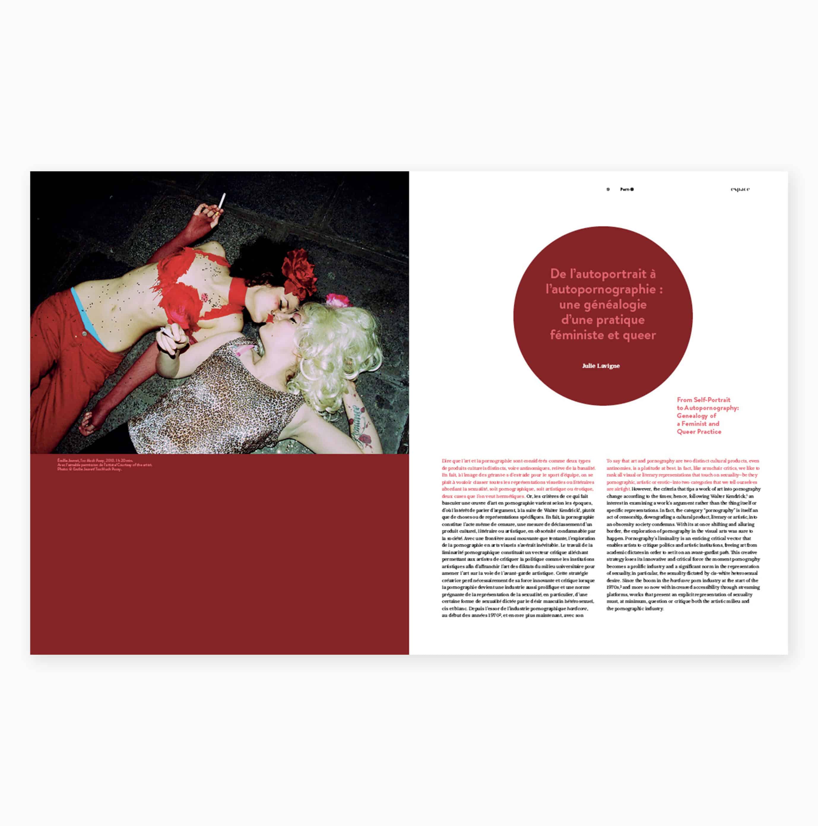 Following the boom of the pornography industry in the 1970s, artworks that present explicit representations of sexuality critiqued both the industry and the art world. Over several decades, artists have transgressed not only the compartmentalization of art and pornography categories, but also the patriarchal dimension of art, commercial pornography and sexual norms. The essays in the Porn-O issue provide an overview of various art productions that feature a diversity of sexual representations through alternative, educational, gay, lesbian, dyke, queer, feminist and amateur pornography, which transforms the very contours of pornography, literally making it protean.