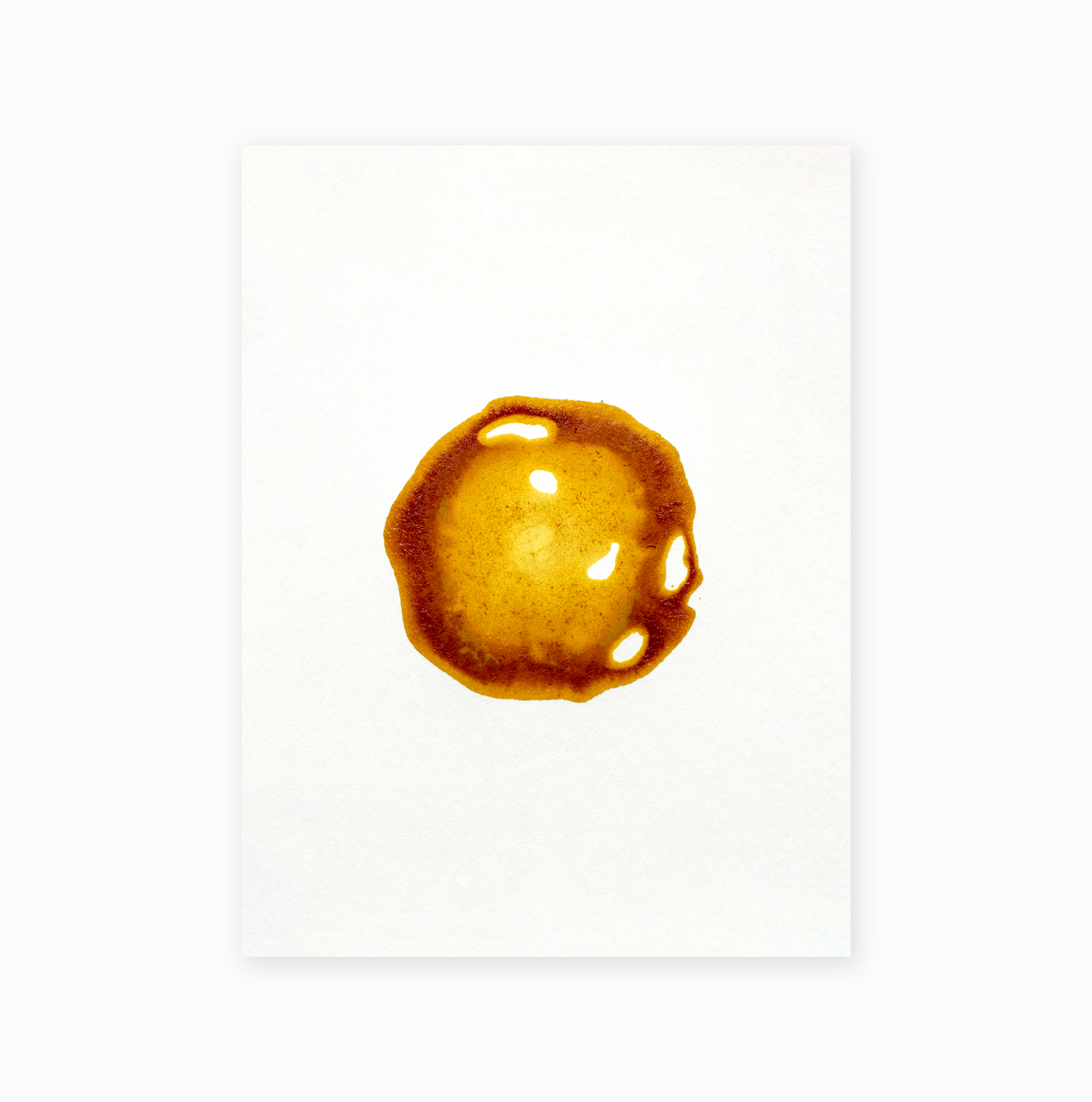 The series of photographies entitled fleurs liquides rgathers image of vegetable ink rounds. Native or introduced, the most abundant varieties of wildflowers shape the landscape. To create the inks, Mélissa has picked wild roses, epiliobes, golden rod and St. John’s wort in the Baie-des-Chaleurs, in the Gaspé Peninsula. She then experimented with them without concern for conservation, letting the matter transform. Dropped on watercolor paper, the inks dried revealing their own geography.
