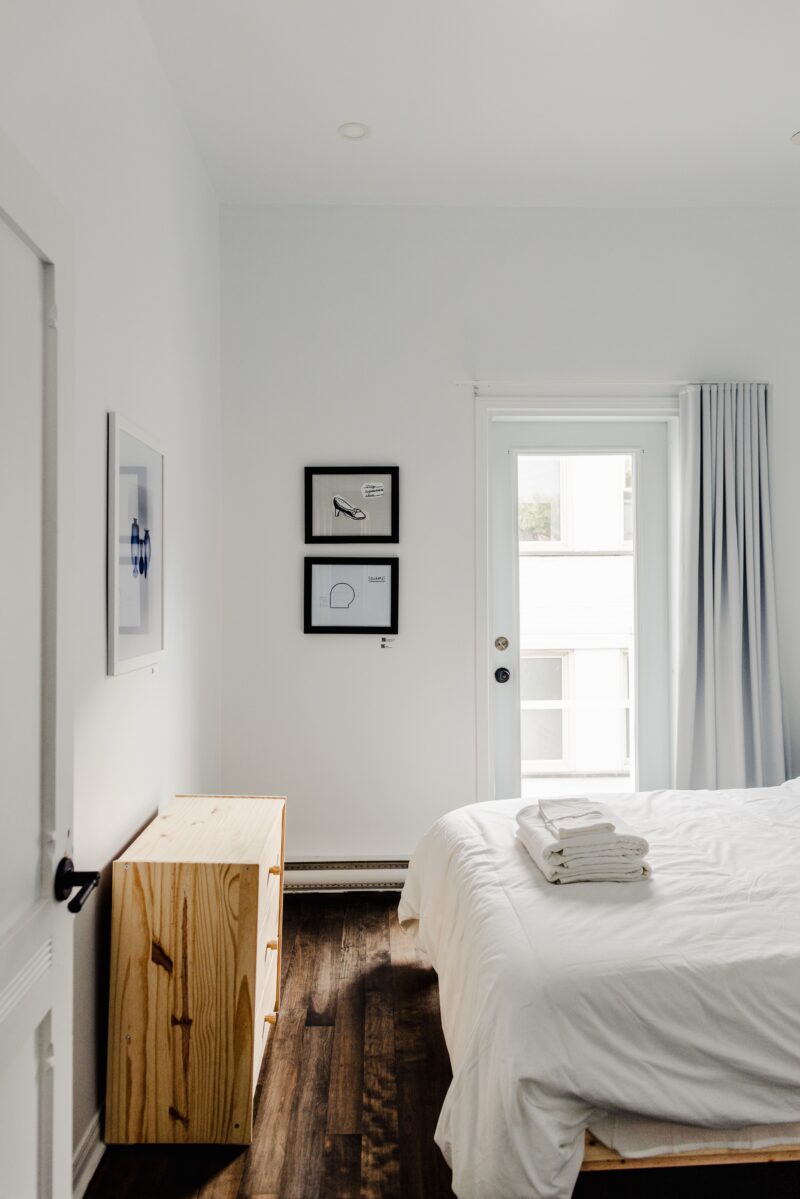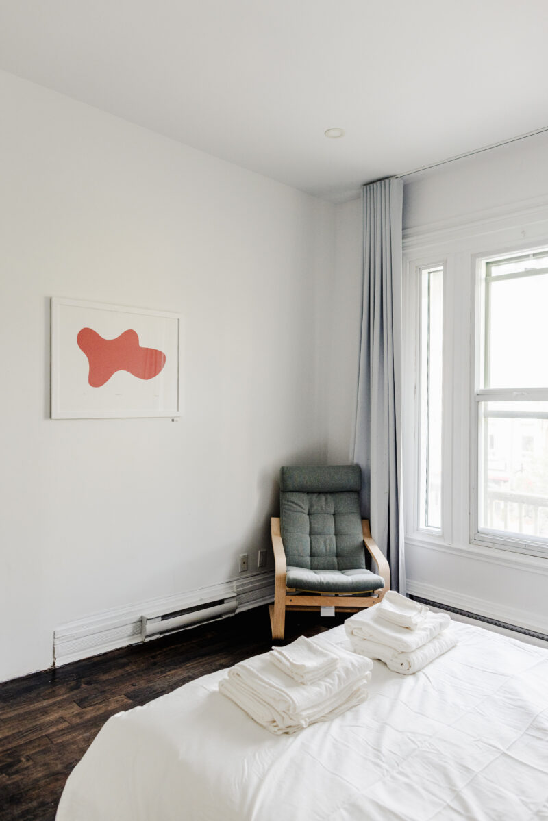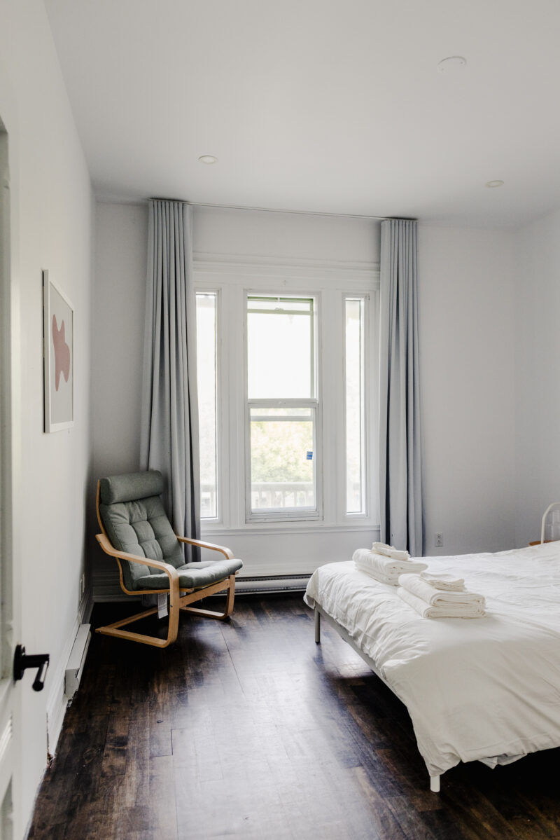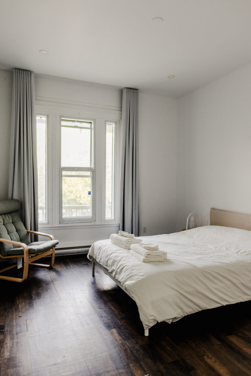 Spacieuse et élégante, la Chambre #2 met en valeur un équilibre entre modernité et authenticité. Elle propose un cadre accueillant pour les invités, avec suffisamment d’espace pour combiner détente et activités. Sa flexibilité permet d’y organiser aussi bien des séjours privés que des retraites créatives.