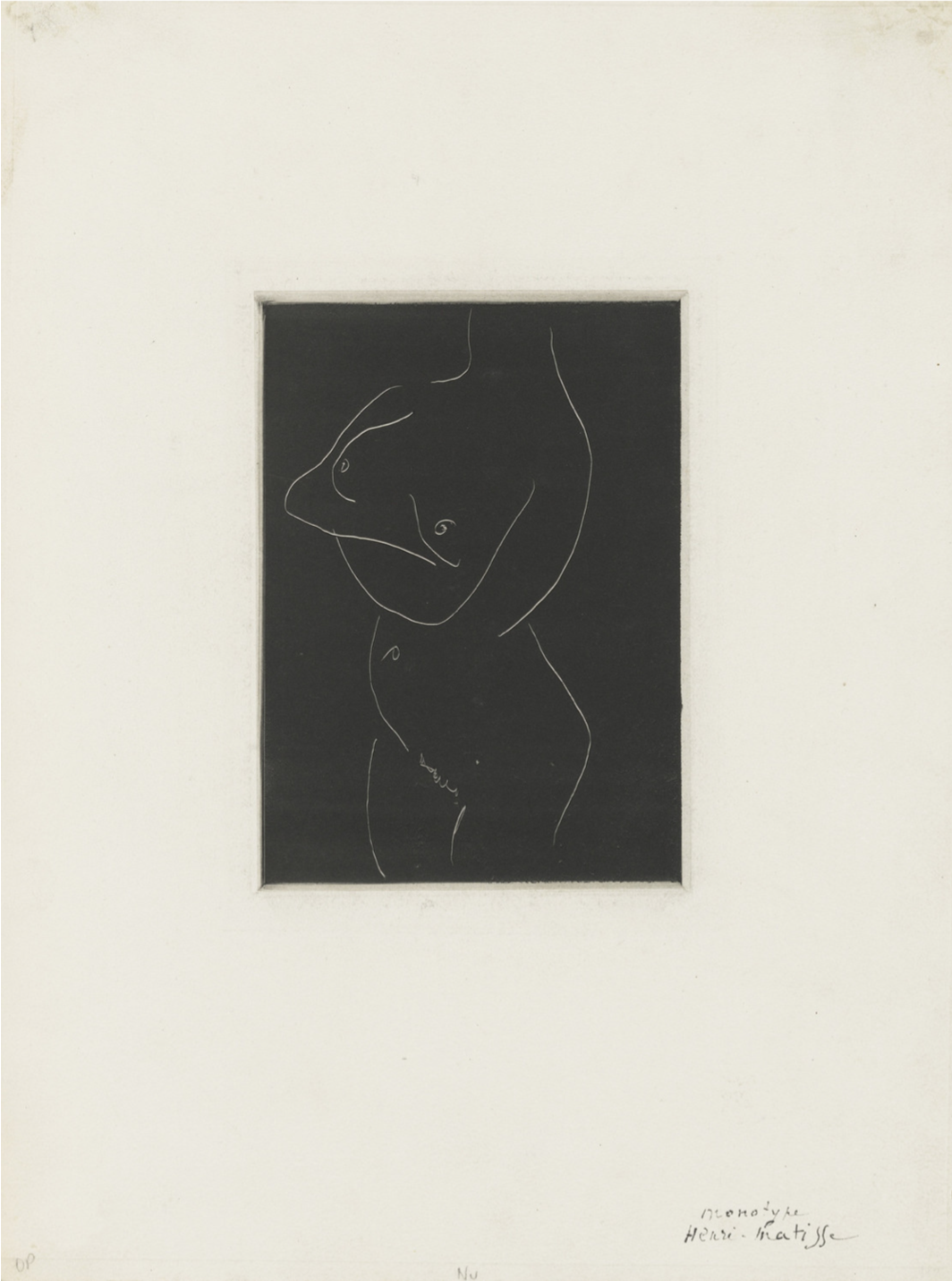 Monotype sur papier. Plaque : 8 7/16 × 6 5/16″ (21.5 ×16.1 cm); Feuille : 11 3/10 × 7 1/2″ (28.7 × 19.1 cm)