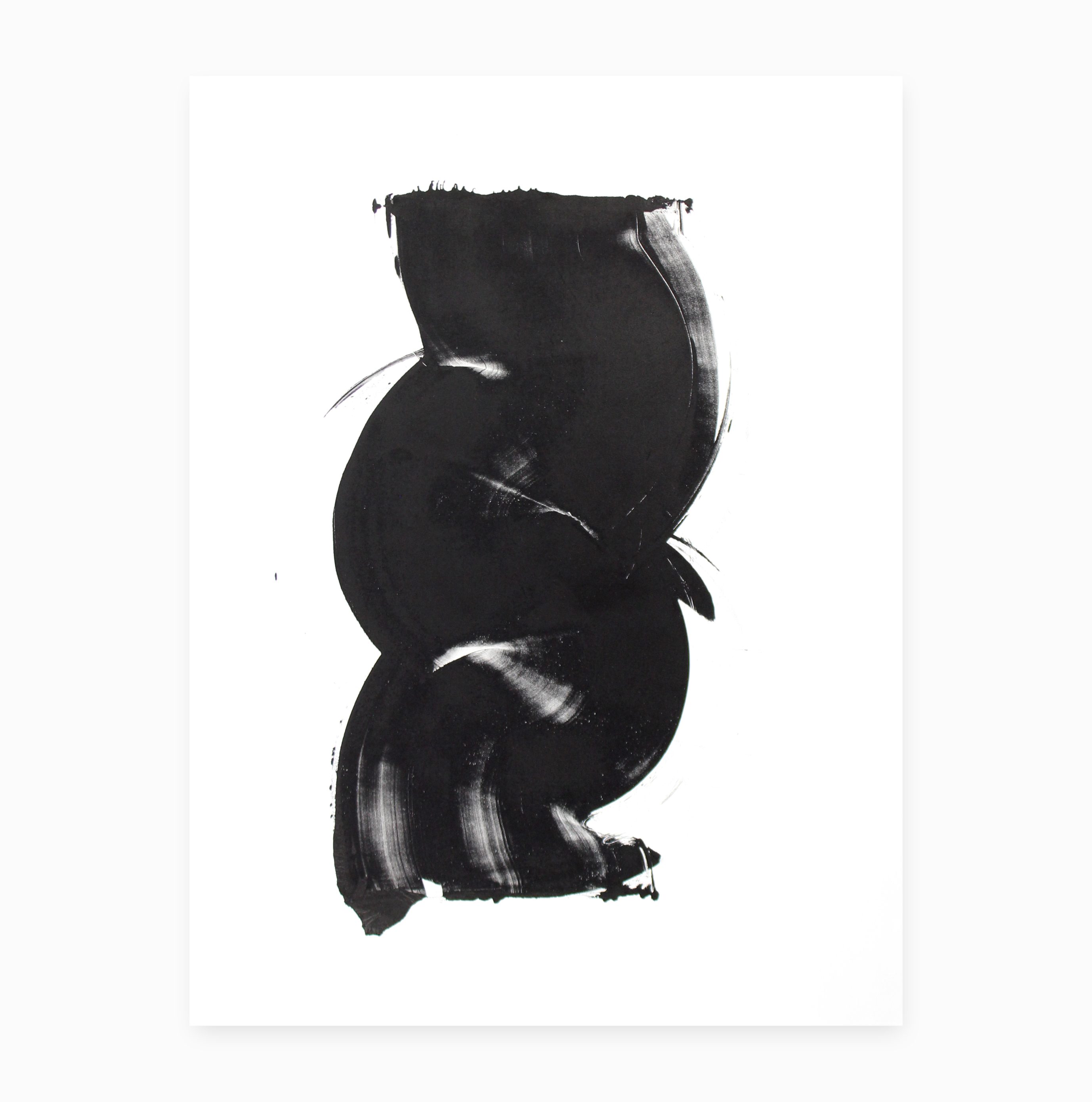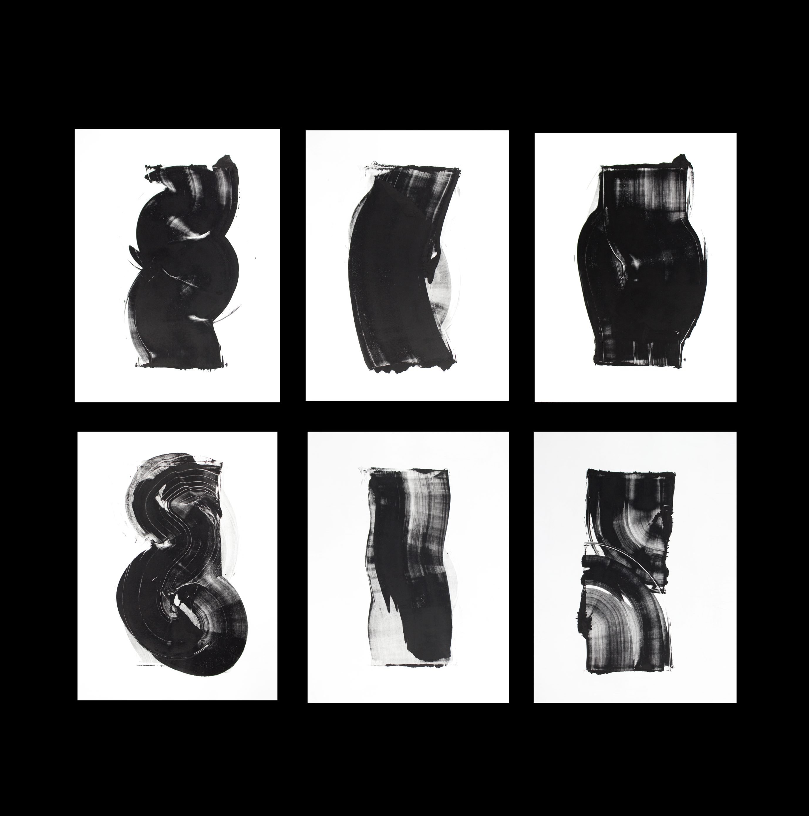 Au premier regard, c’est une forme de mouvement continu et fluide qui transparaît dans ces œuvres. Omniprésent dans l’approche artistique de Hamie Robitaille, le mouvement dans le monotype semble direct et organique. Il fournit aussi un aperçu dynamique des interactions que l’artiste a pu avoir avec ses toiles, une chorégraphie transposée sur papier. Finalement, la possibilité de concevoir les œuvres de la série dans différents angles est une autre forme de mouvement rendue possible par le monotype.