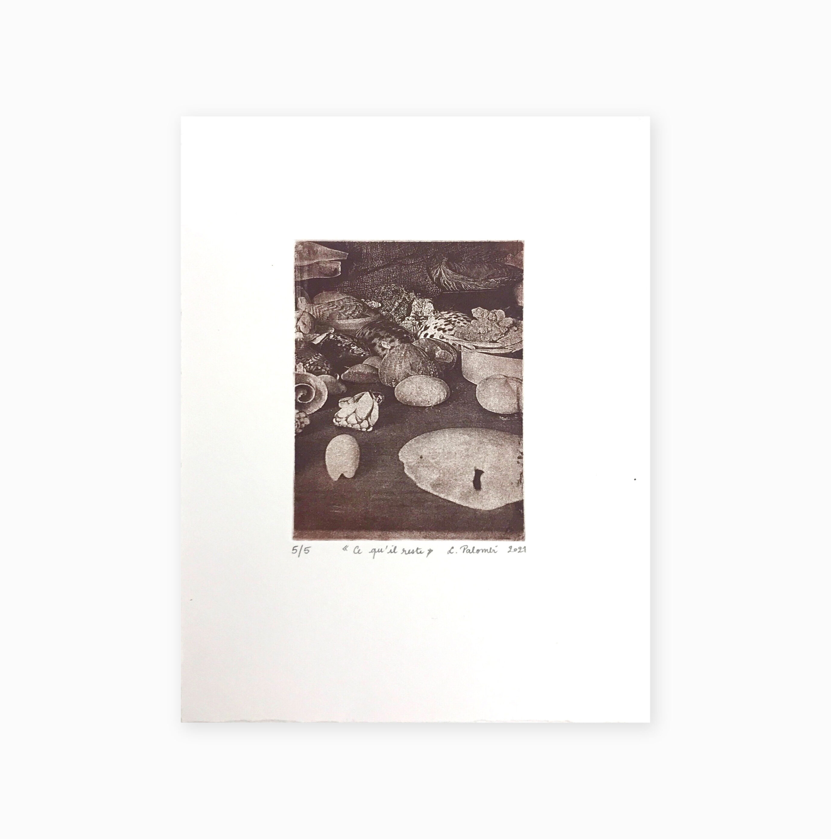 Architecte de formation, Lucie Palombi est une amoureuse de la lithographie sur pierre et de la gravure sur cuivre. Elle explore à l’Atelier Circulaire l’étendue des possibles offerte par ces deux techniques. Du dessin à l’impression, elle s’attache à réaliser chacune des étapes du processus avec patience et minutie.