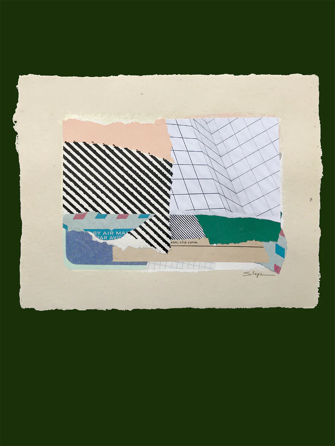 Collage de morceaux trouvés et de morceaux imprimés en sérigraphie sur le papier d’Atelier retailles