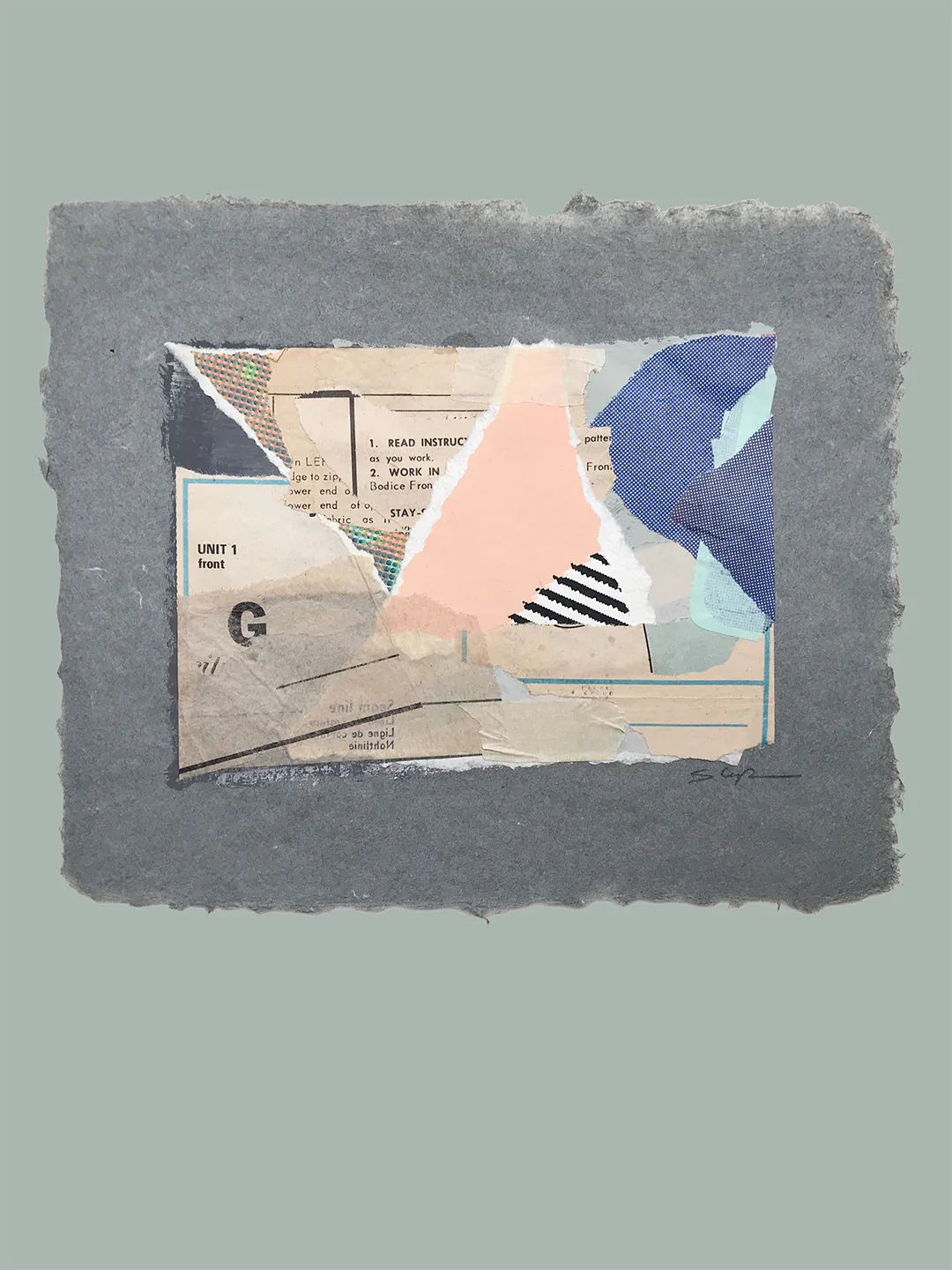 Collage de morceaux trouvés et de morceaux imprimés en sérigraphie sur le papier d’Atelier retailles