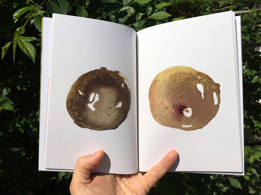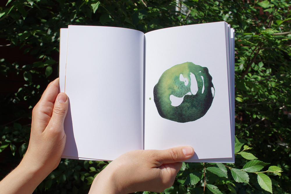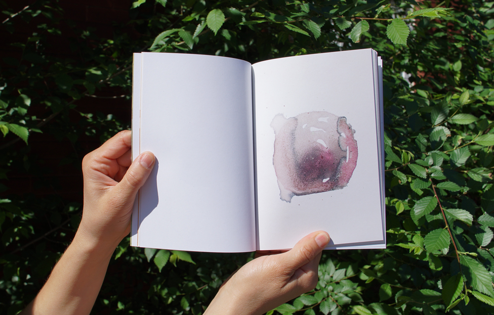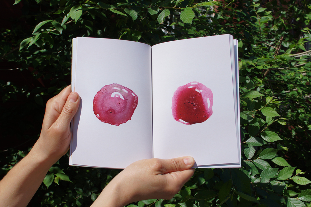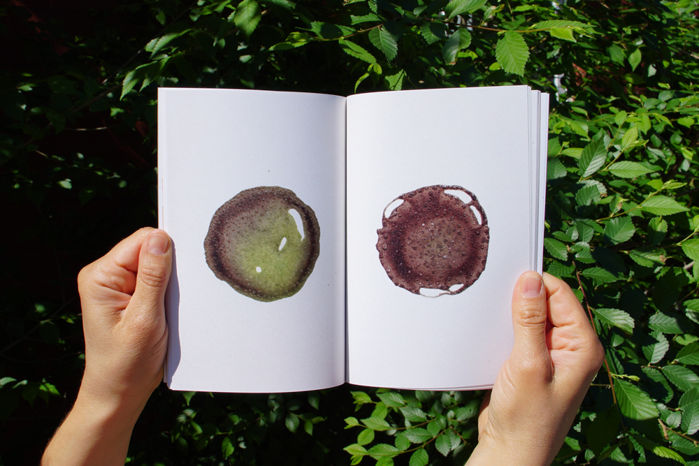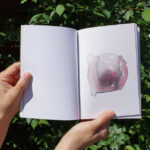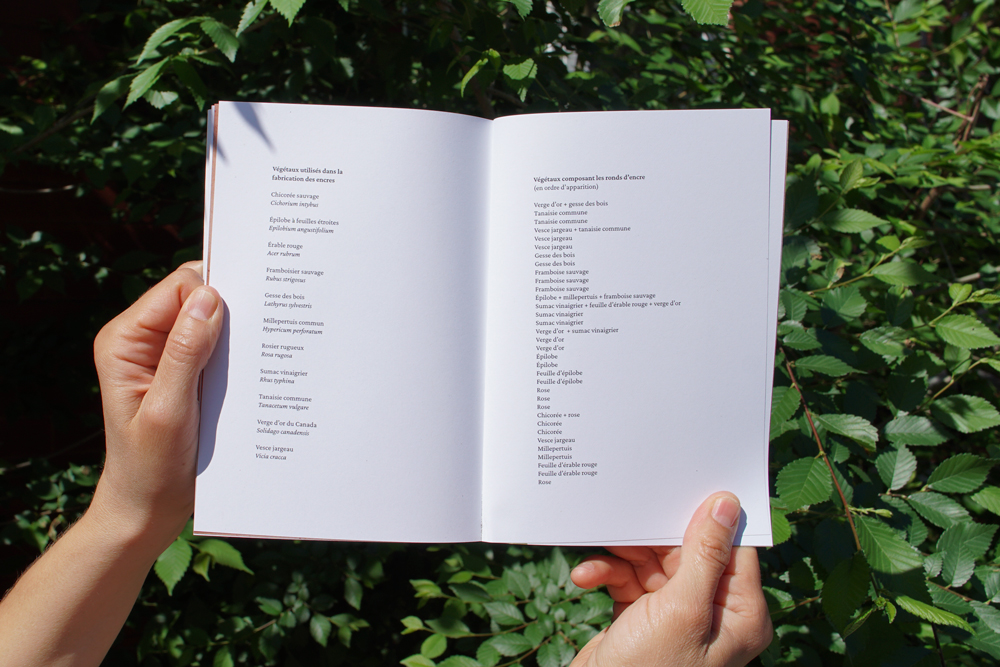 fleurs liquides, est un livre photographique qui regroupe des images de ronds d’encres végétales. Indigènes ou introduites, les variétés les plus abondantes de fleurs sauvages façonnent le paysage. Pour créer les encres, Mélissa a entre autres cueilli des roses sauvages, des épilobes, de la verge d’or et du millepertuis dans la Baie-des-Chaleurs, en Gaspésie. Elle a ensuite expérimenté avec celles-ci sans souci de conservation, laissant la matière se transformer. Déposées au compte-gouttes sur du papier aquarelle, les encres ont séché laissant apparaître leur propre géographie.