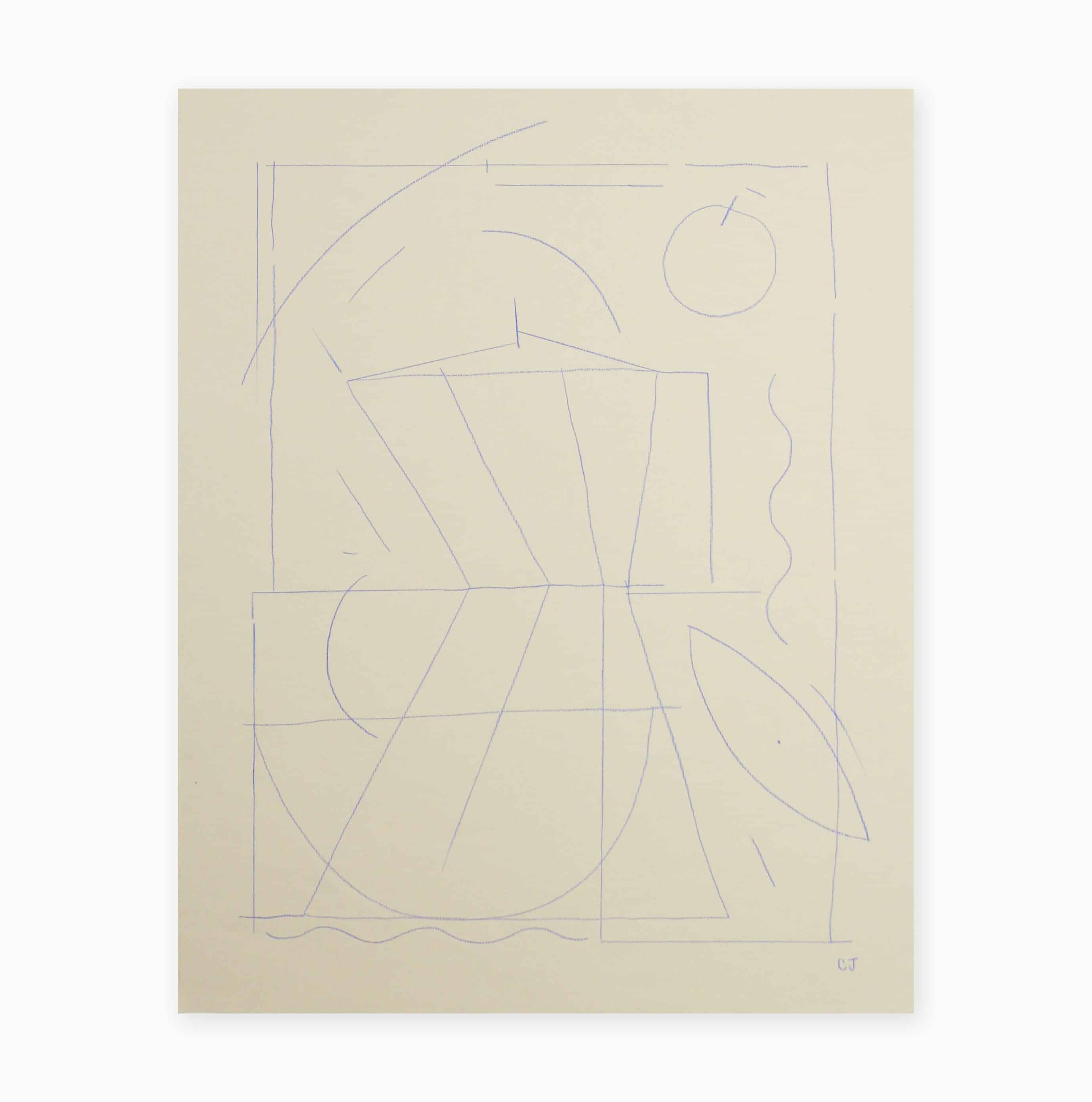 Une oeuvre originale, dessinée à la main avec des crayons de couleur sur papier teint. Des lignes délicatement dessinées, des mouvements forts et un pot de moka représentent une scène de cuisine.