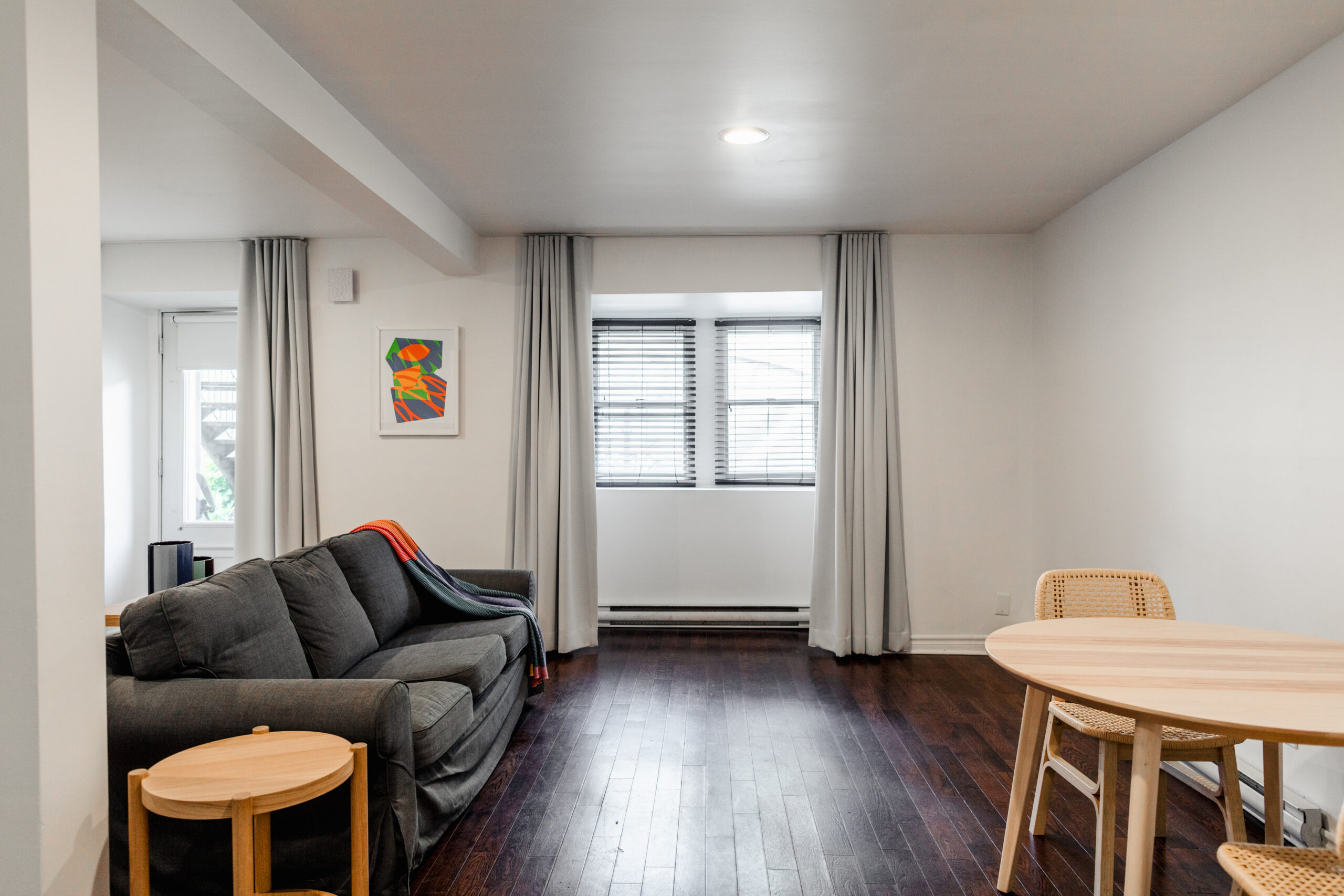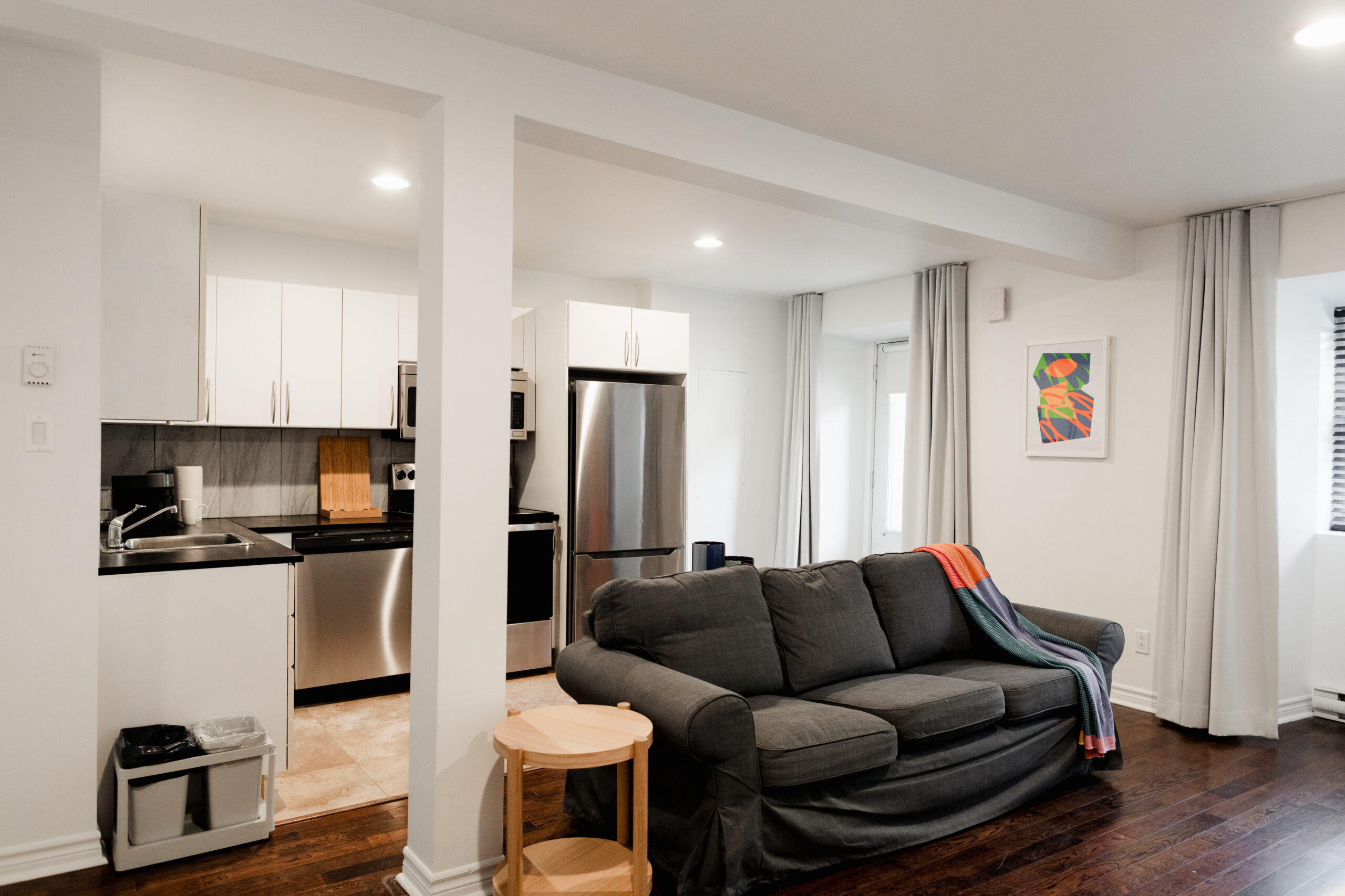 Studio avec lit douillet, kitchenette équipée, espace de travail et salle de bain privative. Directement sur la rue Saint-Denis. Idéal pour un séjour confortable en solo ou en couple.